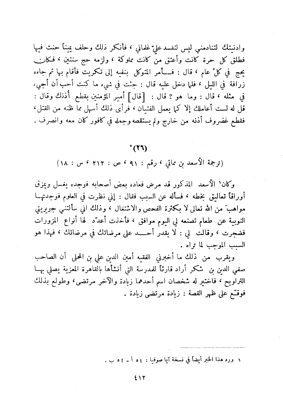(ترجمة الأسعد بن مماتي، رقم: 91، ص: 212، س: 18)