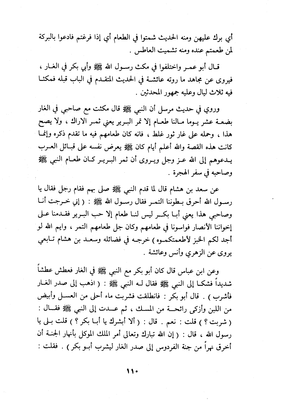 وروي في حديث مرسل أن النبي -صلى الله عليه وسلم- قال: "مكثت مع صاحبي في الغار بضعة عشر يومًا ما لنا طعام إلا ثمر البرير -يعني ثمر الأراك" ولا يصح هذا وحمله على غار ثور غلط؛ فإنه كان طعامهم فيه ما تقدم ذكره وإنما كانت هذه القصة والله أعلم أيام كان صلى الله عليه وسلم يعرض نفسه على قبائل العرب يدعوهم إلى الله -عز وجل- ويروى أن ثمر البرير كان طعام النبي -صلى الله عليه وسلم- وصاحبه في سفر الهجرة.