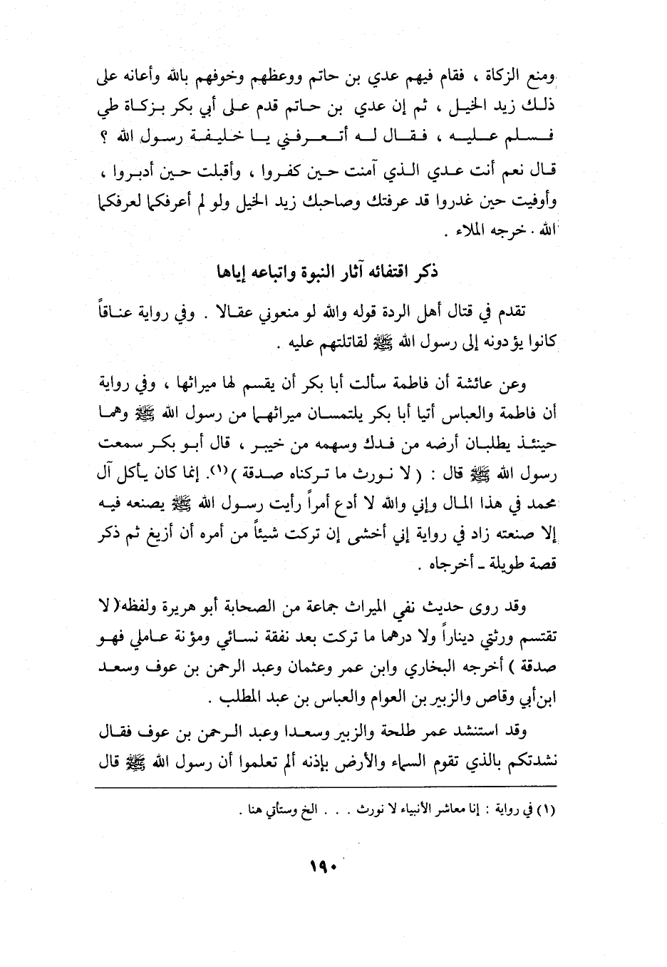 1 في رواية: "إنا معاشر الأنبياء لا نورث ... " إلخ, وستأتي هنا.