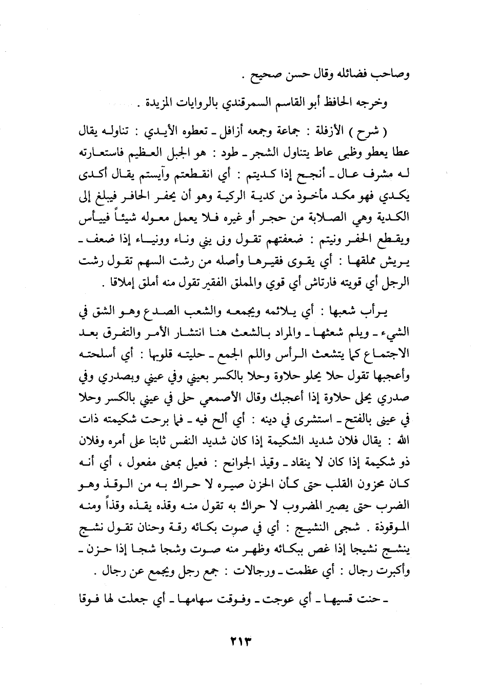 "شرح" الأزفلة: جماعة وجمعه: أزافل, تعطوه الأيدي: تناوله يقال: عطا يعطو وظبي عاط: يتناول الشجر, الطود هو: الجبل العظيم فاستعارته له مشرف عال, أنجح إذ كديتم أي: انقطعتم وآيستم يقال: أكدى يكدي فهو مكد مأخوذ من كدية الركية, وهو أن يحفر الحافر فيبلغ إلى الكدية وهي الصلابة من حجر أو غيره فلا يعمل معوله شيئًا, فييأس ويقطع الحفر, ونيتم أي: ضعفتم تقول: ونى يني وناء وونياء إذا ضعف, يريش مملقها أي: يقوى فقيرها وأصله من رشت السهم تقول: رشت الرجل أي: قويته فارتاش أي: قوي والمملق: الفقير تقول منه: أملق إملاقًا.