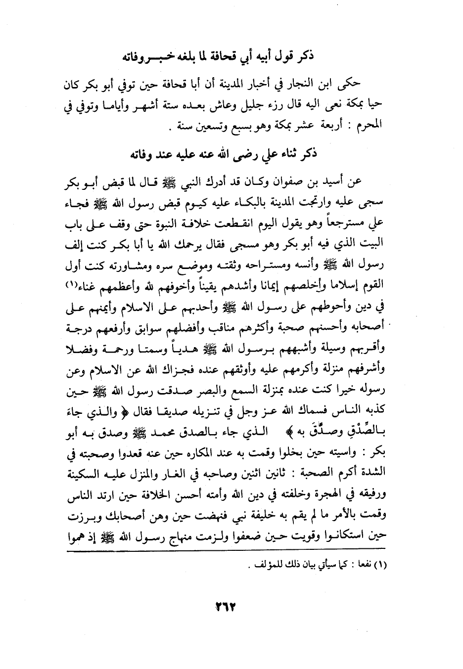ذكر قول أبيه أبي قحافة لما بلغه خبر وفاته: