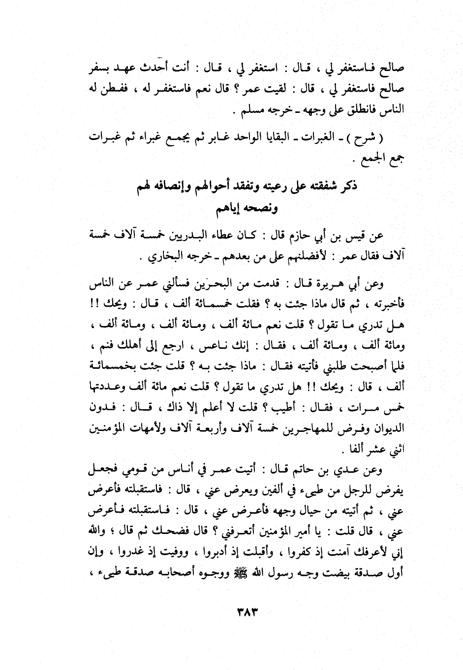 ذكر شفقته على رعيته وتفقد أحوالهم وإنصافه لهم ونصحه إياهم: