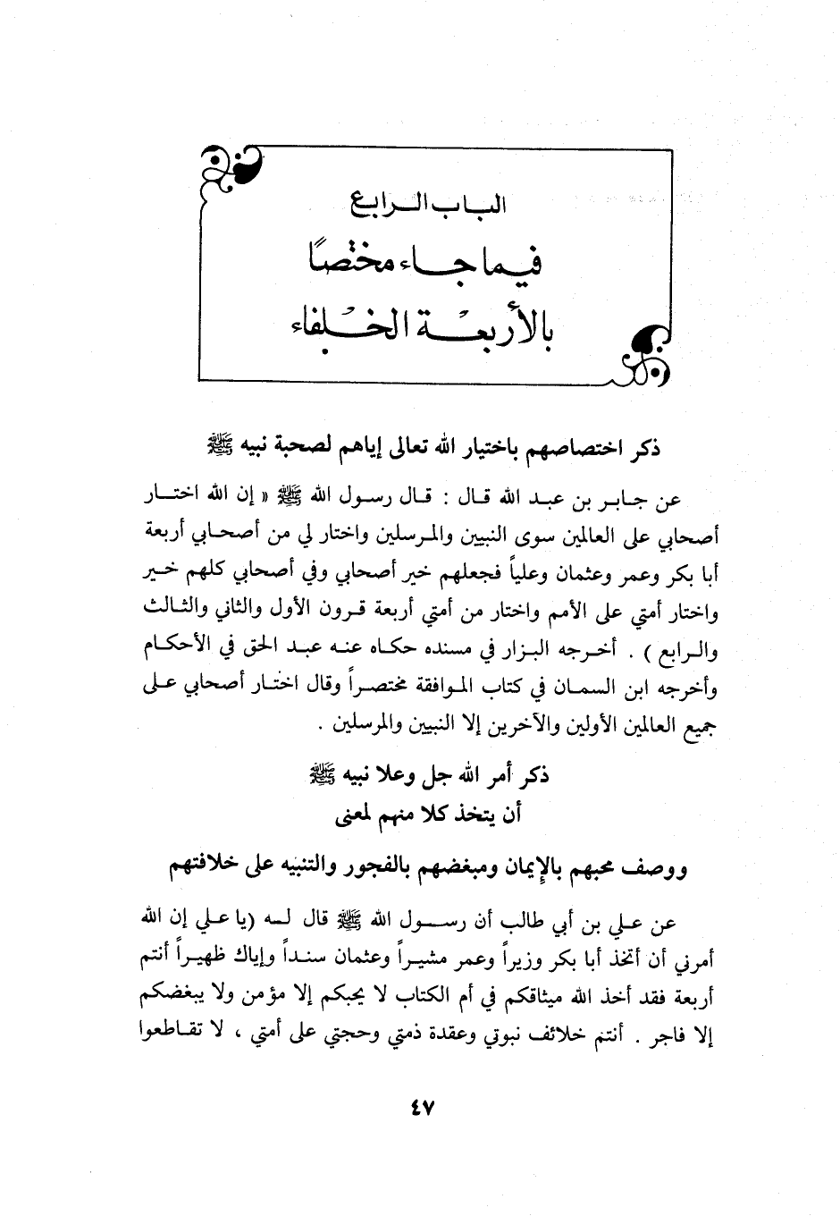 الباب الرابع: فيما جاء مختصًّا بالأربعة الخلفاء