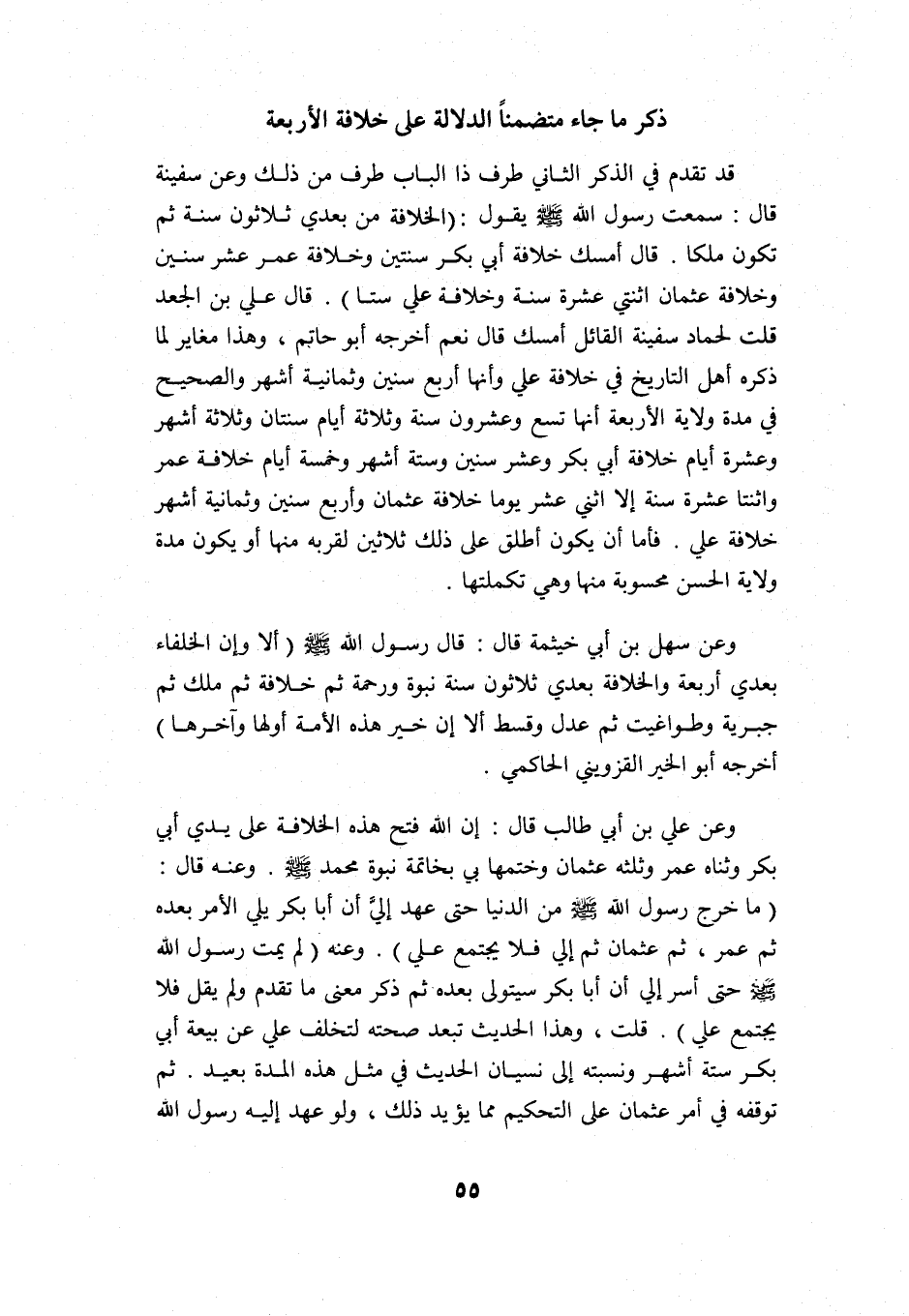 ذكر ما جاء متضمنًا الدلالة على خلافة الأربعة: