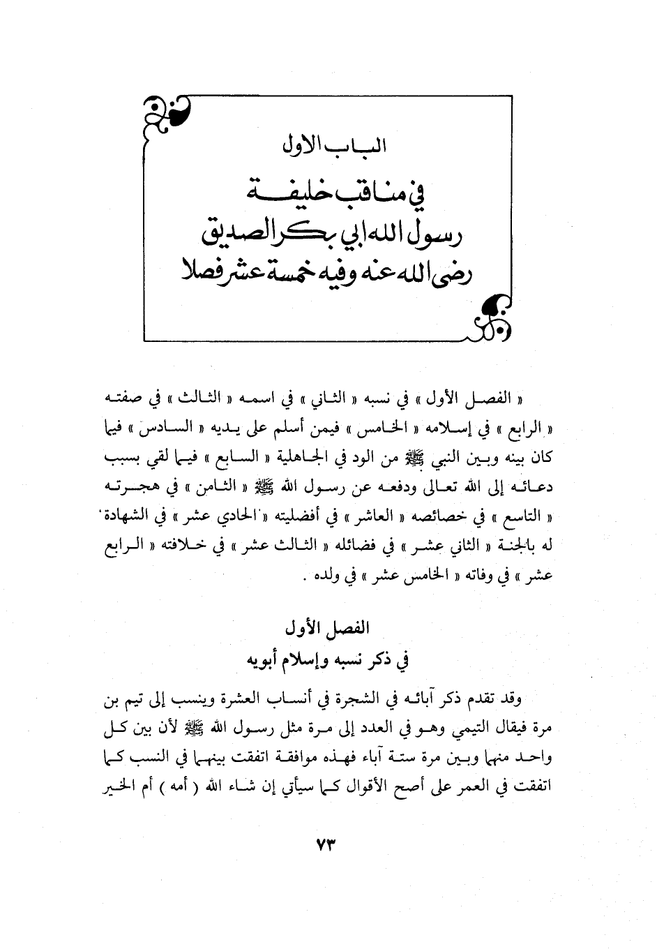 الباب الأول: في مناقب خليفة رسول الله أبي بكر الصديق
