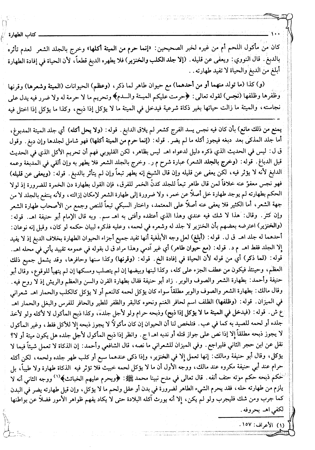 قَوْلُهُ: (إنَّمَا حَرُمَ مِنْ الْمَيْتَةِ أَكْلُهَا) فَهُوَ شَامِلٌ لِجِلْدِهَا وَإِنْ دُبِغَ. وَقَوْلُ ق ل: لَيْسَ فِي الْحَدِيثِ الَّذِي ذَكَرَهُ دَلِيلٌ لِدَعْوَاهُ اهـ لَيْسَ بِظَاهِرٍ، لَكِنْ الْقَلْيُوبِيُّ فَهِمَ أَنَّ تَحْرِيمَ الْأَكْلِ الَّذِي فِي الْحَدِيثِ قَبْلَ الدِّبَاغِ.