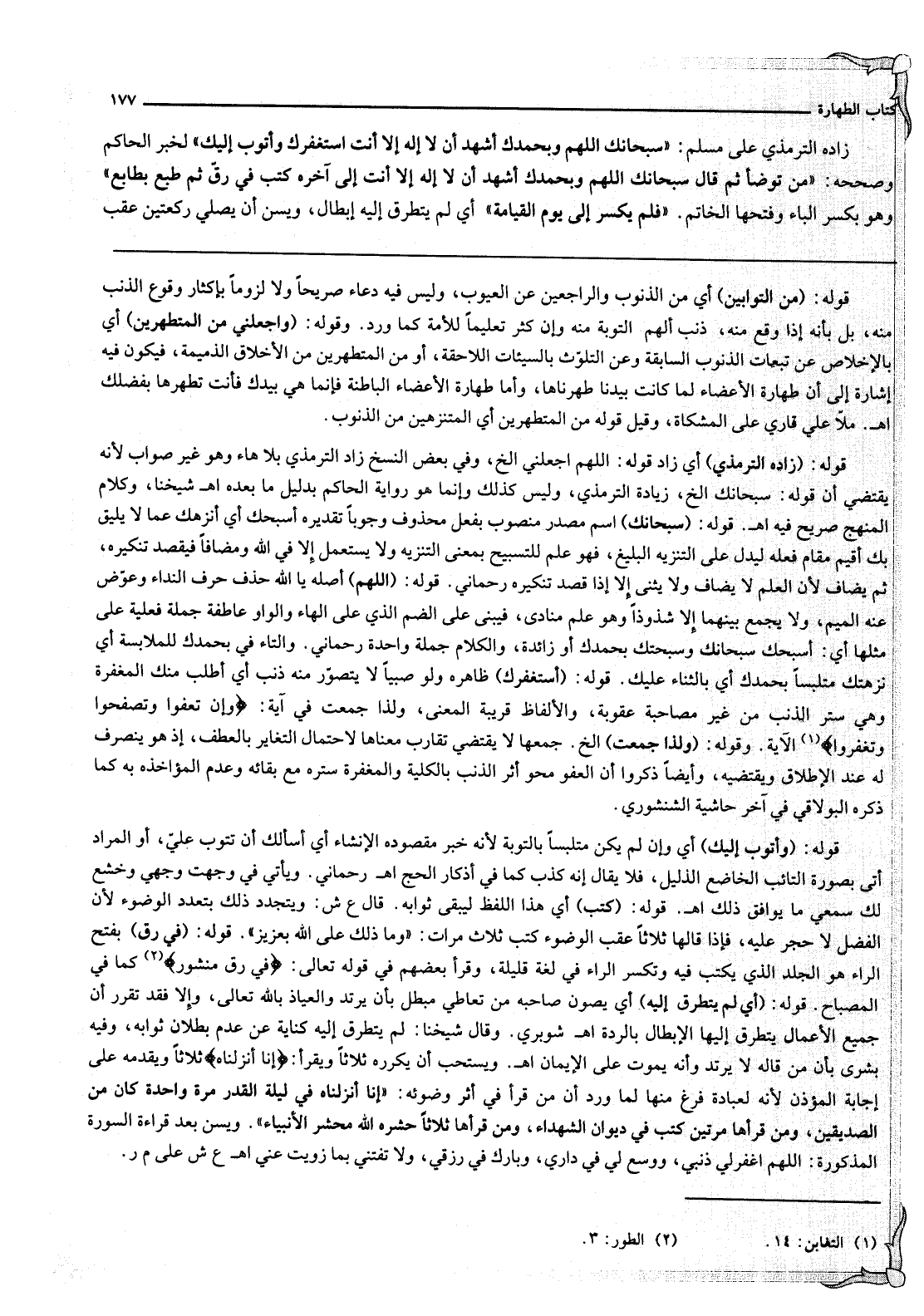 ـــــــــــــــــــــــــــــQقَوْلُهُ: «مِنْ التَّوَّابِينَ» أَيْ مِنْ الذُّنُوبِ وَالرَّاجِعِينَ عَنْ الْعُيُوبِ، وَلَيْسَ فِيهِ دُعَاءٌ صَرِيحًا وَلَا لُزُومًا بِإِكْثَارِ وُقُوعِ الذَّنْبِ مِنْهُ، بَلْ بِأَنَّهُ إذَا وَقَعَ مِنْهُ ذَنْبٌ أُلْهِمَ التَّوْبَةَ مِنْهُ، وَإِنْ كَثُرَ تَعْلِيمًا لِلْأُمَّةِ كَمَا وَرَدَ. وَقَوْلُهُ: «وَاجْعَلْنِي مِنْ الْمُتَطَهِّرِينَ» أَيْ بِالْإِخْلَاصِ عَنْ تَبَعَاتِ الذُّنُوبِ السَّابِقَةِ وَعَنْ التَّلَوُّثِ بِالسَّيِّئَاتِ اللَّاحِقَةِ، أَوْ مِنْ الْمُتَطَهِّرِينَ مِنْ الْأَخْلَاقِ الذَّمِيمَةِ، فَيَكُونُ فِيهِ إشَارَةٌ إلَى أَنَّ طَهَارَةَ الْأَعْضَاءِ لَمَّا كَانَتْ بِيَدِنَا طَهَّرْنَاهَا، وَأَمَّا طَهَارَةُ الْأَعْضَاءِ الْبَاطِنَةِ فَإِنَّمَا هِيَ بِيَدِك فَأَنْتَ تُطَهِّرُهَا بِفَضْلِك. اهـ. مُلَّا عَلِيٌّ قَارِي عَلَى الْمِشْكَاةِ، وَقِيلَ قَوْلُهُ مِنْ الْمُتَطَهِّرِينَ أَيْ الْمُتَنَزِّهِينَ مِنْ الذُّنُوبِ.