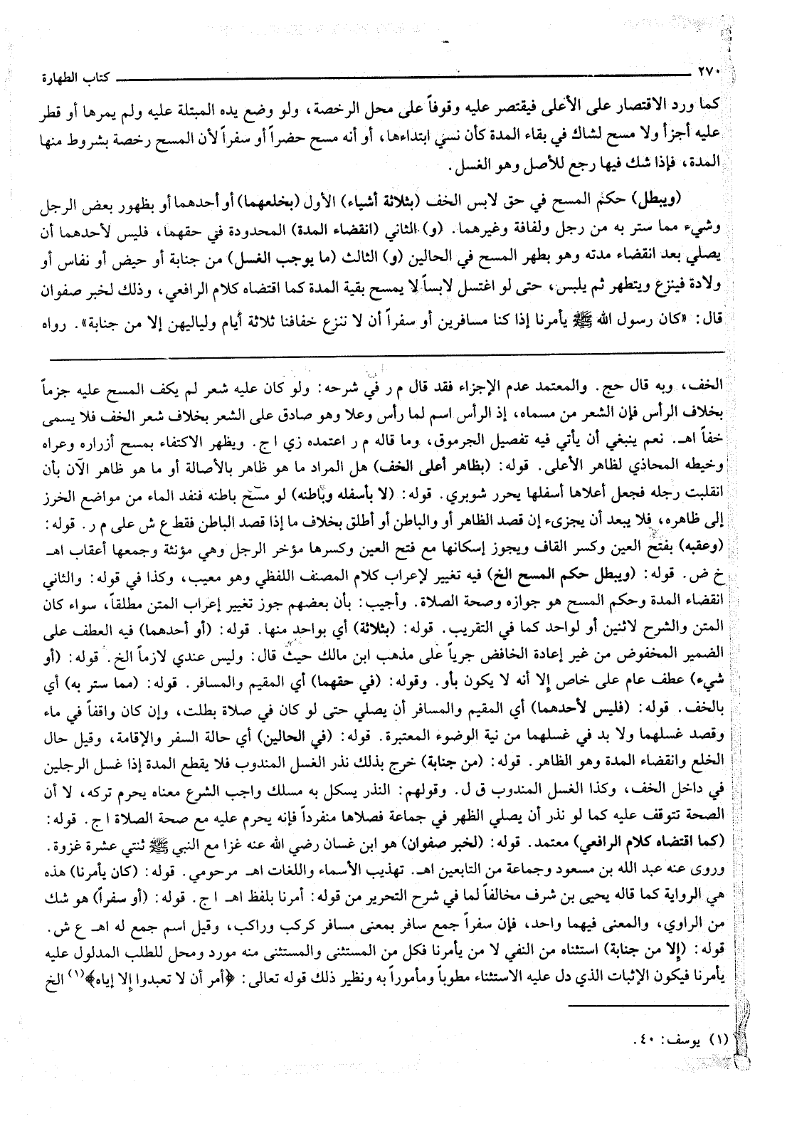قَوْلُهُ: (لِخَبَرِ صَفْوَانَ) هُوَ ابْنُ غَسَّانَ - رَضِيَ اللَّهُ عَنْهُ - غَزَا مَعَ النَّبِيِّ - صَلَّى اللَّهُ عَلَيْهِ وَسَلَّمَ - ثِنْتَيْ عَشْرَةَ غَزْوَةً. وَرَوَى عَنْهُ عَبْدُ اللَّهِ بْنُ مَسْعُودٍ وَجَمَاعَةٌ مِنْ التَّابِعِينَ اهـ. تَهْذِيبُ الْأَسْمَاءِ وَاللُّغَاتِ. اهـ. مَرْحُومِيٌّ. قَوْلُهُ: (كَانَ يَأْمُرُنَا) هَذِهِ هِيَ الرِّوَايَةُ كَمَا قَالَهُ يَحْيَى بْنُ شَرَفٍ مُخَالِفًا لِمَا فِي شَرْحِ التَّحْرِيرِ مِنْ قَوْلِهِ: أَمَرَنَا بِلَفْظٍ اهـ اج. قَوْلُهُ: (أَوْ سَفْرًا) هُوَ شَكٌّ مِنْ الرَّاوِي، وَالْمَعْنَى فِيهِمَا وَاحِدٌ، فَإِنَّ سَفْرًا جَمْعُ سَافِرٍ بِمَعْنَى مُسَافِرٍ كَرَكْبٍ وَرَاكِبٍ، وَقِيلَ اسْمُ جَمْعٍ لَهُ. اهـ. ع ش.