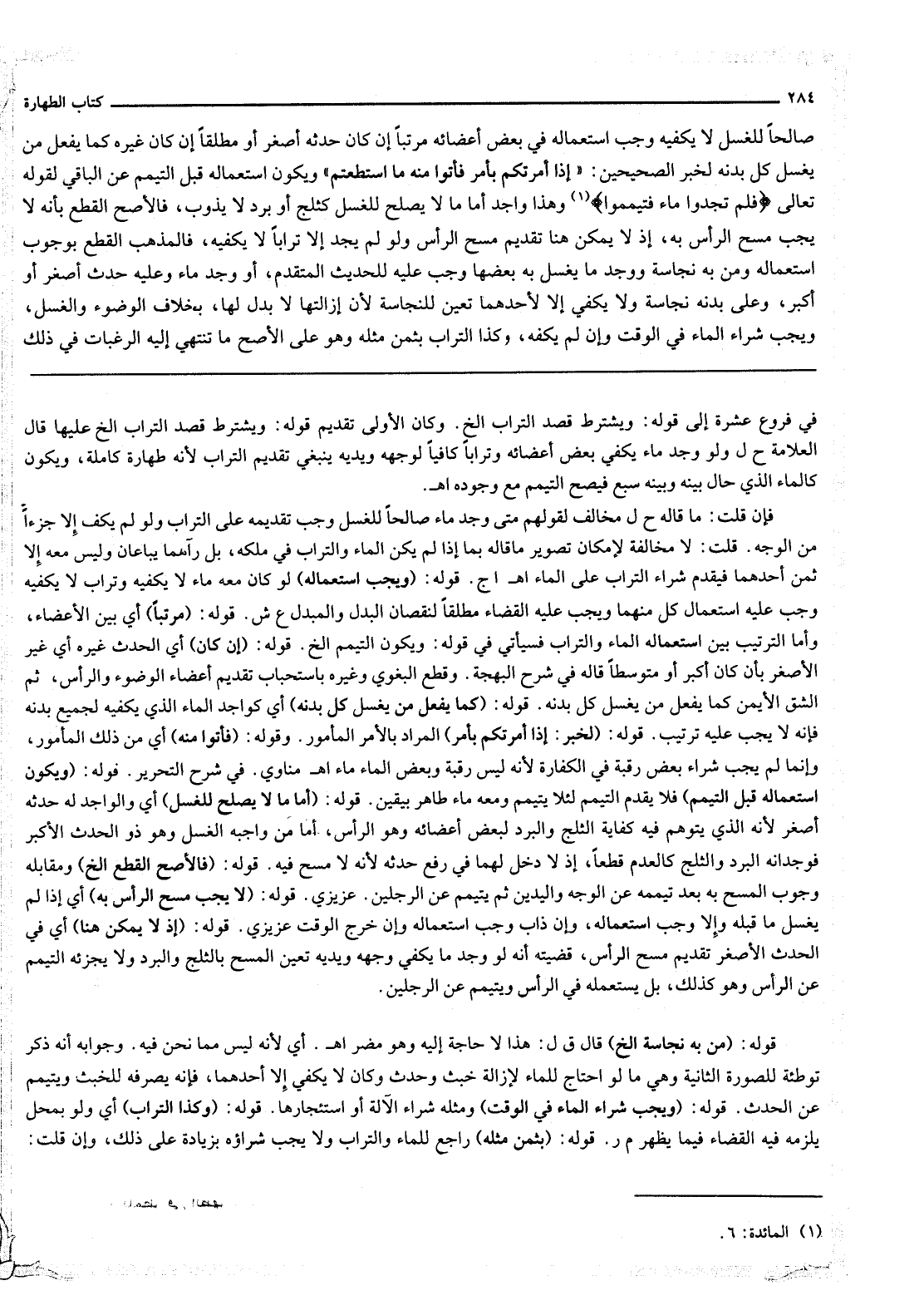 ـــــــــــــــــــــــــــــQفِي فُرُوعٍ عَشَرَةٍ إلَى قَوْلِهِ: وَيُشْتَرَطُ قَصْدُ التُّرَابِ إلَخْ. وَكَانَ الْأَوْلَى تَقْدِيمُ قَوْلِهِ: وَيُشْتَرَطُ قَصْدُ التُّرَابِ إلَخْ عَلَيْهَا قَالَ الْعَلَّامَةُ ح ل وَلَوْ وَجَدَ مَاءً يَكْفِي بَعْضَ أَعْضَائِهِ، وَتُرَابًا كَافِيًا لِوَجْهِهِ وَيَدَيْهِ يَنْبَغِي تَقْدِيمُ التُّرَابِ؛ لِأَنَّهُ طَهَارَةٌ كَامِلَةٌ، وَيَكُونُ كَالْمَاءِ الَّذِي حَالَ بَيْنَهُ وَبَيْنَهُ سَبُعٌ فَيَصِحُّ التَّيَمُّمُ مَعَ وُجُودِهِ اهـ. فَإِنْ قُلْت: مَا قَالَهُ ح ل مُخَالِفٌ لِقَوْلِهِمْ: مَتَى وَجَدَ مَاءً صَالِحًا لِلْغُسْلِ وَجَبَ تَقْدِيمُهُ عَلَى التُّرَابِ، وَلَوْ لَمْ يَكْفِ إلَّا جُزْءًا مِنْ الْوَجْهِ. قُلْت: لَا مُخَالَفَةَ لِإِمْكَانِ تَصْوِيرِ مَا قَالَهُ بِمَا إذَا لَمْ يَكُنْ الْمَاءُ وَالتُّرَابُ فِي مِلْكِهِ، بَلْ رَآهُمَا يُبَاعَانِ، وَلَيْسَ مَعَهُ إلَّا ثَمَنُ أَحَدِهِمَا فَيُقَدِّمُ شِرَاءَ التُّرَابِ عَلَى الْمَاءِ اهـ اج.