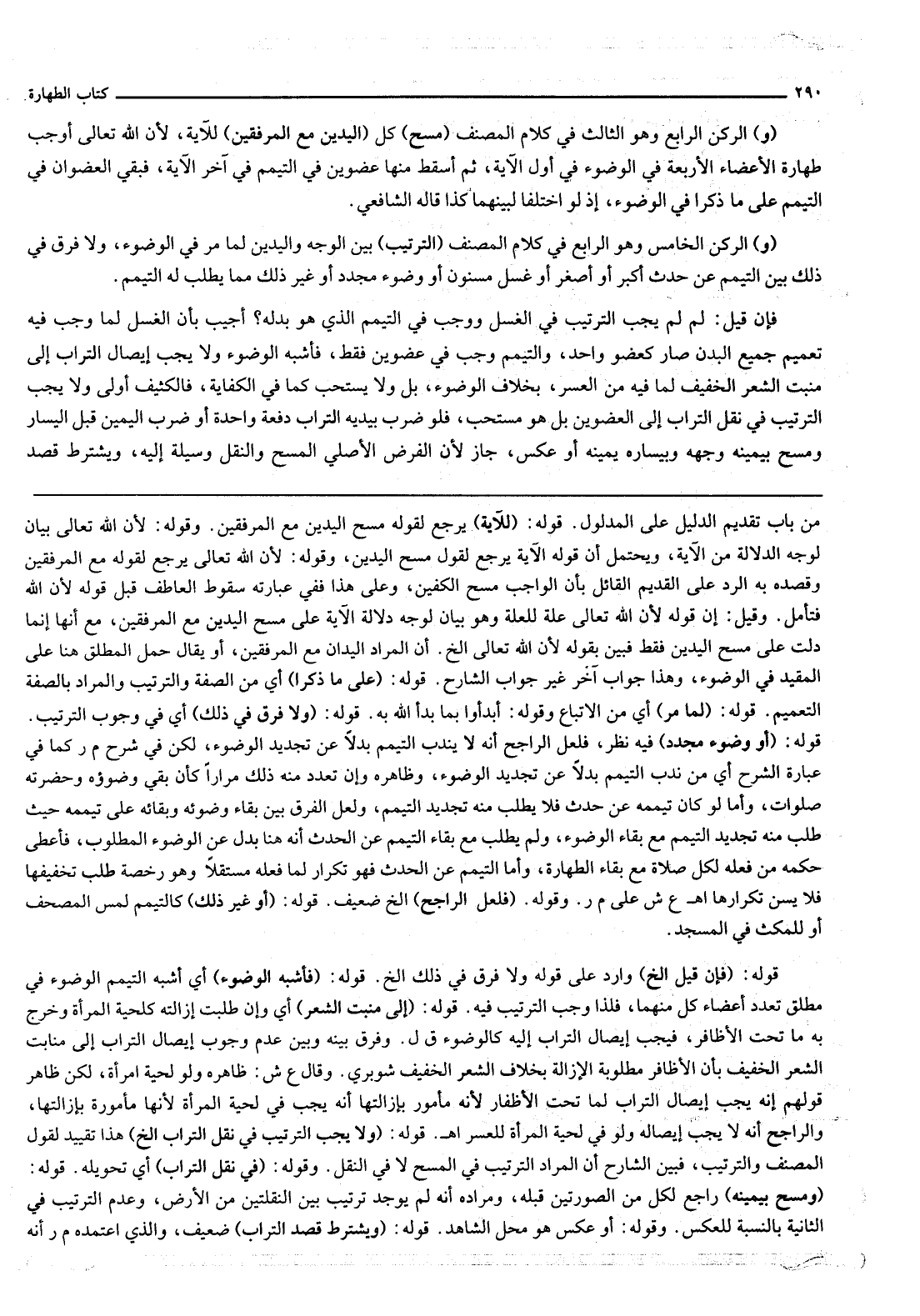 قَوْلُهُ: (وَلَا يَجِبُ التَّرْتِيبُ فِي نَقْلِ التُّرَابِ إلَخْ) هَذَا تَقْيِيدٌ لِقَوْلِ الْمُصَنِّفِ وَالتَّرْتِيبُ، فَبَيَّنَ الشَّارِحُ أَنَّ الْمُرَادَ التَّرْتِيبُ فِي الْمَسْحِ لَا فِي النَّقْلِ. وَقَوْلُهُ: (فِي نَقْلِ التُّرَابِ) أَيْ تَحْوِيلِهِ.