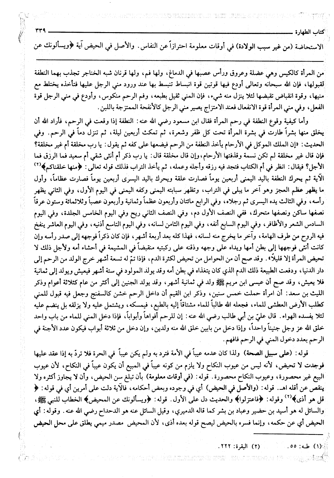 الِاسْتِحَاضَةِ (مِنْ غَيْرِ سَبَبِ الْوِلَادَةِ) فِي أَوْقَاتٍ مَعْلُومَةٍ احْتِرَازًا عَنْ النِّفَاسِ. وَالْأَصْلُ فِي الْحَيْضِ آيَةُ {وَيَسْأَلُونَكَ عَنِ الْمَحِيضِ} [البقرة: 222]