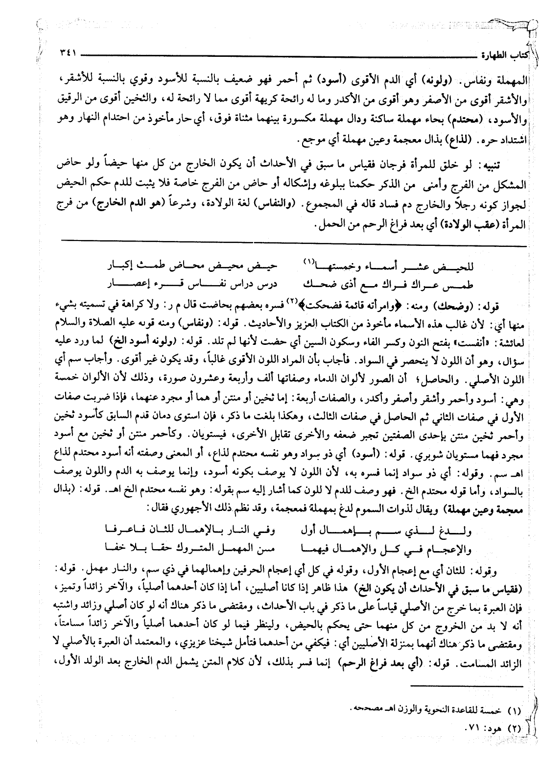 ـــــــــــــــــــــــــــــQلِلْحَيْضِ عَشْرُ أَسْمَاءٍ وَخَمْسَتُهَا ... حَيْضٌ مَحِيضٌ مَحَاضٌ طَمْثٌ إكْبَارُ