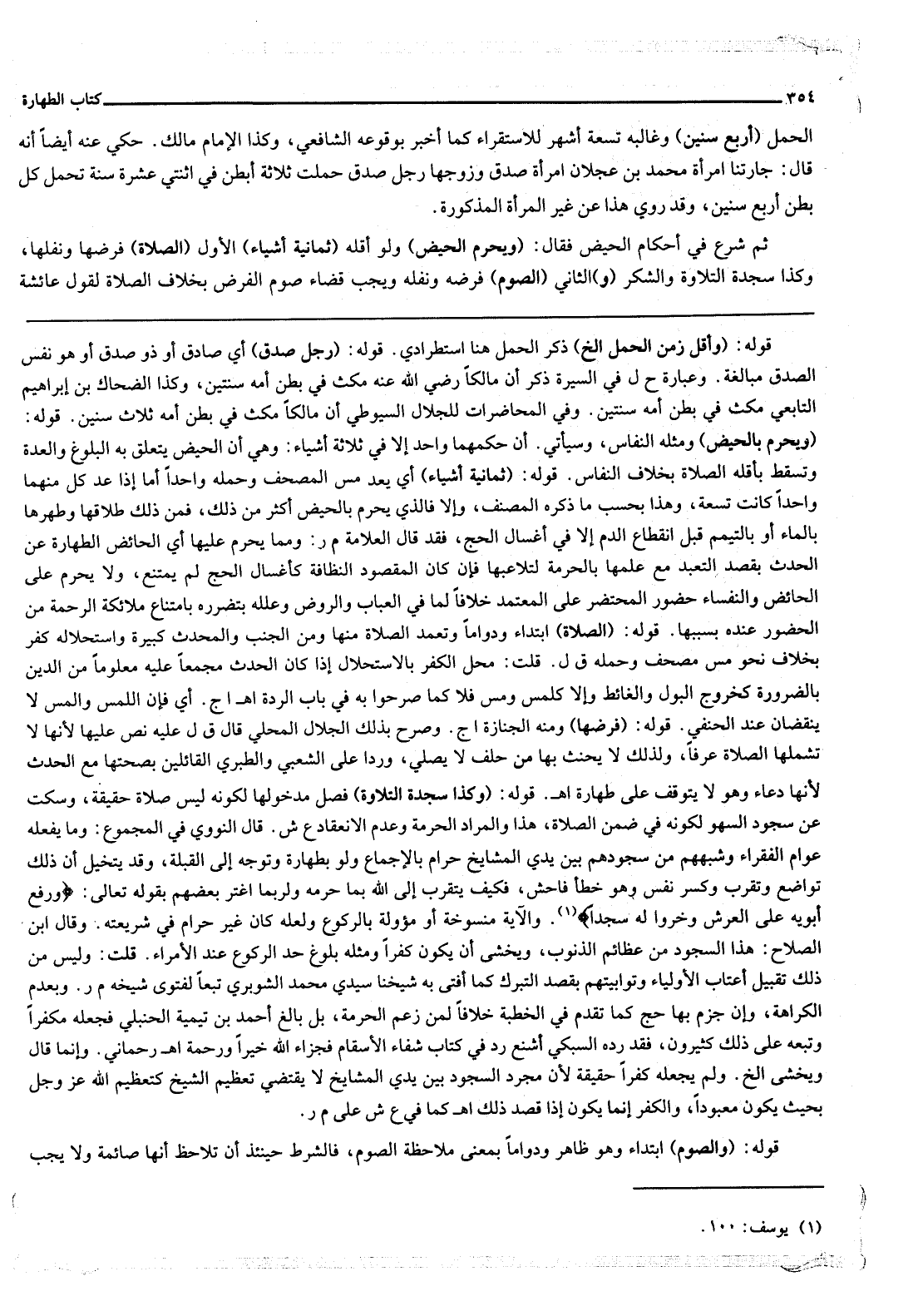 الْحَمْلِ (أَرْبَعُ سِنِينَ) وَغَالِبُهُ تِسْعَةُ أَشْهُرٍ لِلِاسْتِقْرَاءِ كَمَا أَخْبَرَ بِوُقُوعِهِ الشَّافِعِيُّ، وَكَذَا الْإِمَامُ مَالِكٌ. حُكِيَ عَنْهُ أَيْضًا أَنَّهُ قَالَ: جَارَتُنَا امْرَأَةُ مُحَمَّدِ بْنِ عَجْلَانَ امْرَأَةُ صِدْقٍ وَزَوْجُهَا رَجُلُ صِدْقٍ حَمَلَتْ ثَلَاثَةَ أَبْطُنٍ فِي اثْنَتَيْ عَشْرَةَ سَنَةً تَحْمِلُ كُلَّ بَطْنٍ أَرْبَعَ سِنِينَ، وَقَدْ رُوِيَ هَذَا عَنْ غَيْرِ الْمَرْأَةِ الْمَذْكُورَةِ.