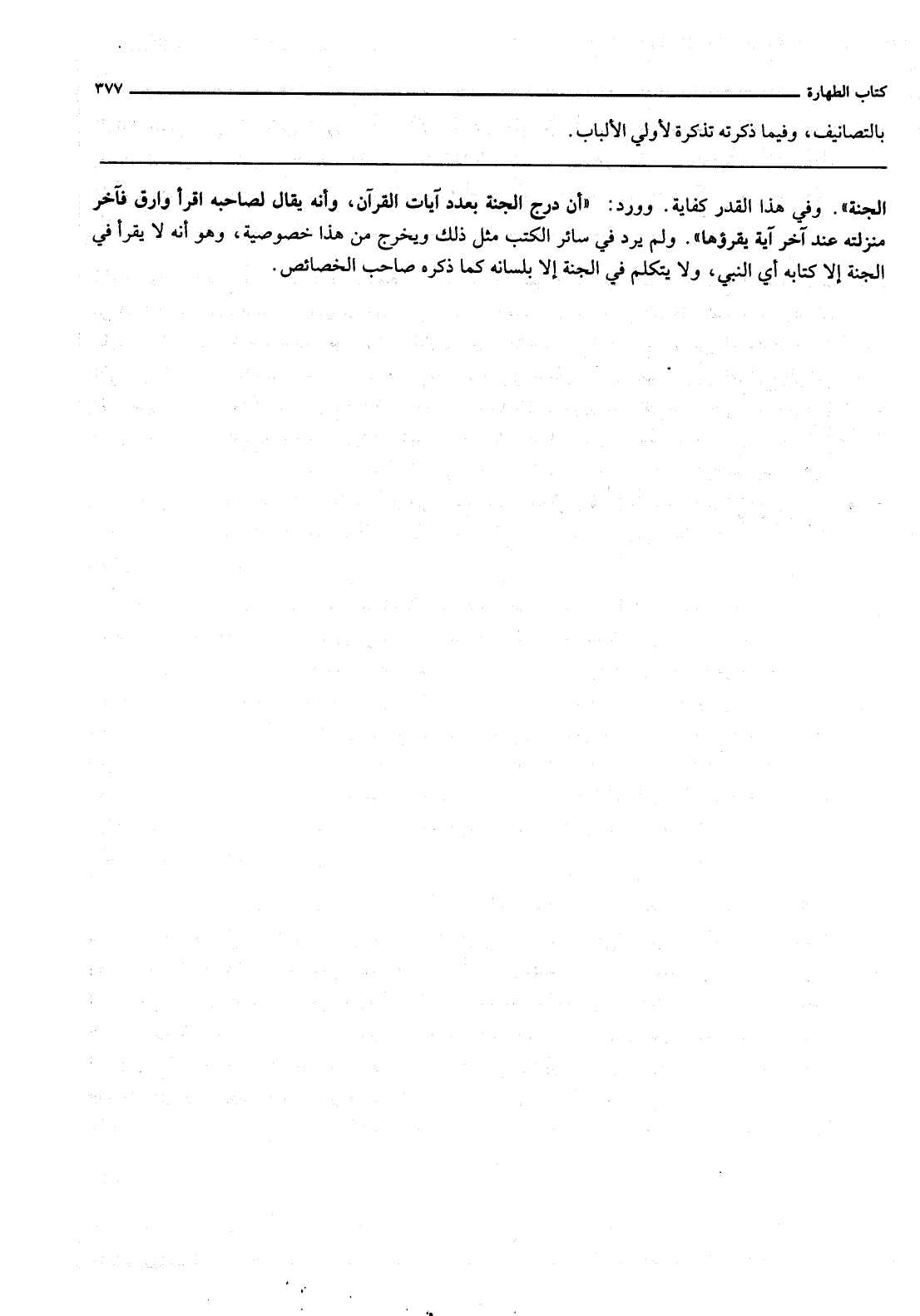 ـــــــــــــــــــــــــــــQالْجَنَّةَ» . وَفِي هَذَا الْقَدْرِ كِفَايَةٌ. وَوَرَدَ: «أَنَّ دَرَجَ الْجَنَّةِ بِعَدَدِ آيَاتِ الْقُرْآنِ، وَأَنَّهُ يُقَالُ لِصَاحِبِهِ اقْرَأْ وَارْقَ فَآخِرُ مَنْزِلَتِهِ عِنْدَ آخِرِ آيَةٍ يَقْرَؤُهَا» . وَلَمْ يَرِدْ فِي سَائِرِ الْكُتُبِ مِثْلُ ذَلِكَ، وَيَخْرُجُ مِنْ هَذَا خُصُوصِيَّةٌ، وَهُوَ أَنَّهُ لَا يُقْرَأُ فِي الْجَنَّةِ إلَّا كِتَابُهُ أَيْ النَّبِيِّ، وَلَا يُتَكَلَّمُ فِي الْجَنَّةِ إلَّا بِلِسَانِهِ كَمَا ذَكَرَهُ صَاحِبُ الْخَصَائِصِ