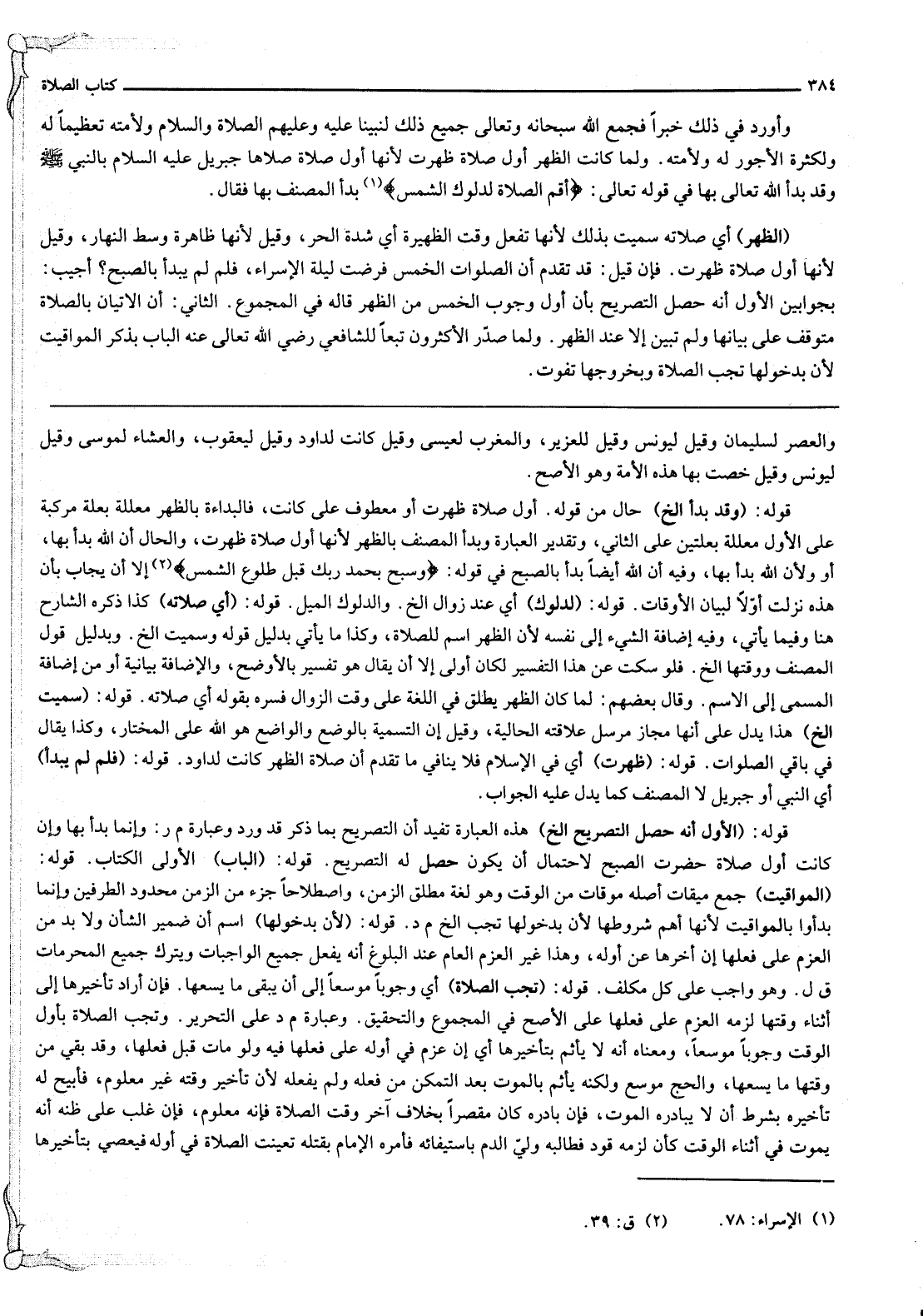 وَلَمَّا كَانَتْ الظُّهْرُ أَوَّلَ صَلَاةٍ ظَهَرَتْ؛ لِأَنَّهَا أَوَّلُ صَلَاةٍ صَلَّاهَا جِبْرِيلُ - عَلَيْهِ السَّلَامُ - بِالنَّبِيِّ - صَلَّى اللَّهُ عَلَيْهِ وَسَلَّمَ - وَقَدْ بَدَأَ اللَّهُ تَعَالَى بِهَا فِي قَوْله تَعَالَى: {أَقِمِ الصَّلاةَ لِدُلُوكِ الشَّمْسِ} [الإسراء: 78] بَدَأَ الْمُصَنِّفُ بِهَا فَقَالَ.