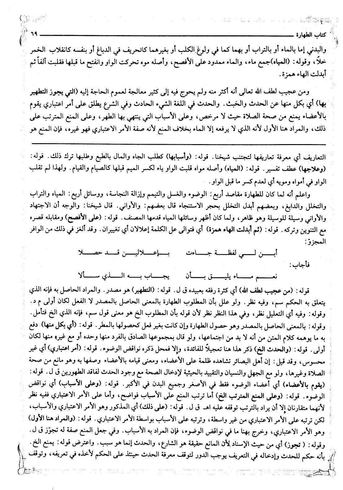 قَوْلُهُ: (مِنْ عَجِيبِ لُطْفِ اللَّهِ) أَيْ كَثْرَةِ رِفْقِهِ بِعَبِيدِهِ ق ل قَوْلُهُ: (التَّطْهِيرُ) هُوَ مَصْدَرٌ. وَالْمُرَادُ الْحَاصِلُ بِهِ فَإِنَّهُ الَّذِي يَتَعَلَّقُ بِهِ الْحُكْمُ سم، وَفِيهِ نَظَرٌ. وَلَوْ عَلَّلَ بِأَنَّ الْمَطْلُوبَ الطَّهَارَةُ بِالْمَعْنَى الْحَاصِلِ بِالْمَصْدَرِ لَا الْفِعْلِ لَكَانَ أَوْلَى م د.