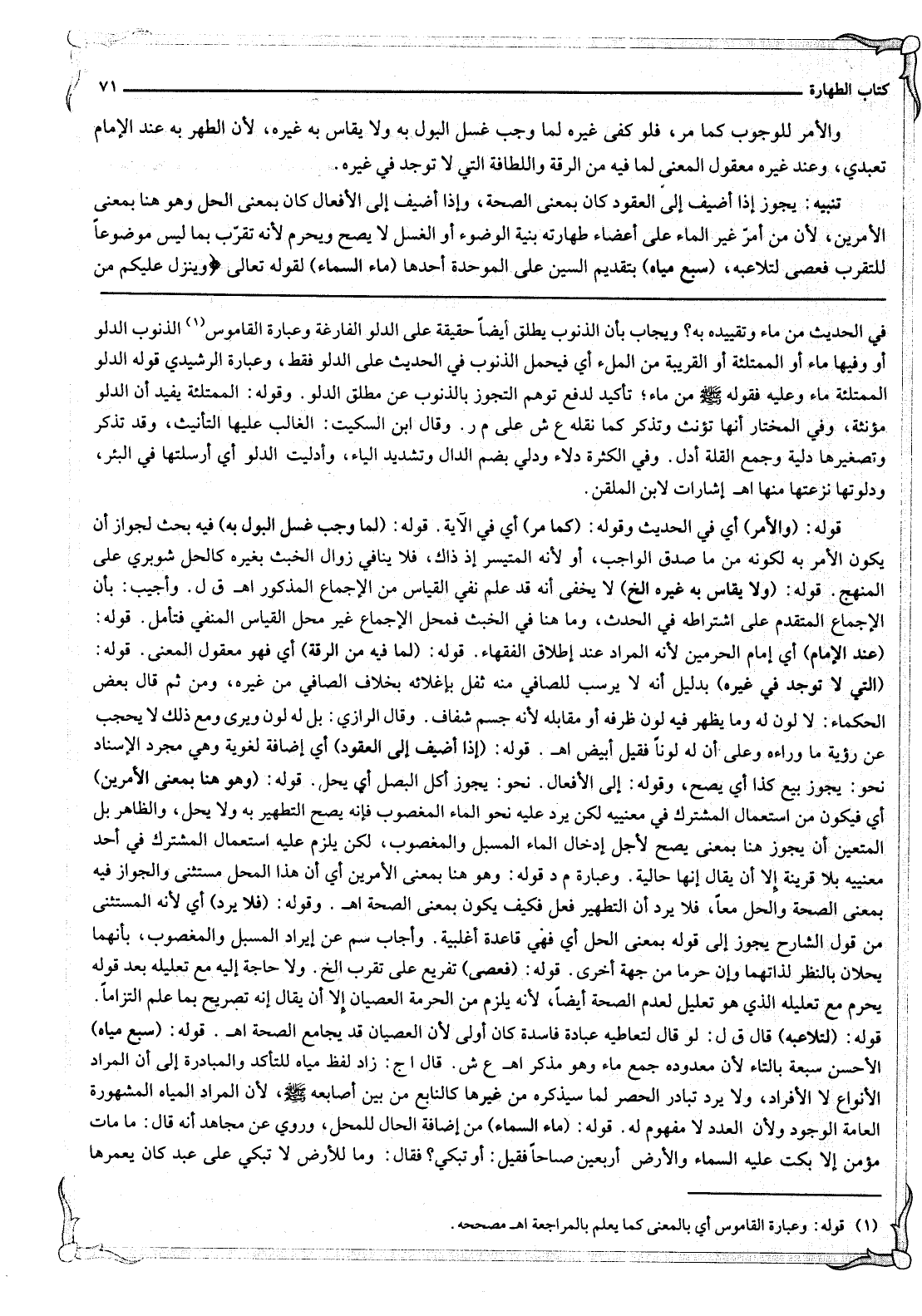 قَوْلُهُ: (وَهُوَ هُنَا بِمَعْنَى الْأَمْرَيْنِ) أَيْ فَيَكُونُ مِنْ اسْتِعْمَالِ الْمُشْتَرَكِ فِي مَعْنَيَيْهِ لَكِنْ يَرِدُ عَلَيْهِ نَحْوُ الْمَاءِ الْمَغْصُوبِ فَإِنَّهُ يَصِحُّ التَّطْهِيرُ بِهِ وَلَا يَحِلُّ، وَالظَّاهِرُ بَلْ الْمُتَعَيِّنُ أَنْ يَجُوزَ هُنَا بِمَعْنَى يَصِحُّ لِأَجْلِ إدْخَالِ الْمَاءِ الْمُسَبَّلِ وَالْمَغْصُوبِ، لَكِنْ يَلْزَمُ عَلَيْهِ اسْتِعْمَالُ الْمُشْتَرَكِ فِي أَحَدِ مَعْنَيَيْهِ بِلَا قَرِينَةٍ إلَّا أَنْ يُقَالَ إنَّهَا حَالِيَّةٌ. وَعِبَارَةُ م د قَوْلُهُ: وَهُوَ هُنَا بِمَعْنَى الْأَمْرَيْنِ أَيْ أَنَّ هَذَا الْمَحَلَّ مُسْتَثْنًى وَالْجَوَازُ فِيهِ بِمَعْنَى الصِّحَّةِ وَالْحِلِّ مَعًا، فَلَا يَرِدُ أَنَّ التَّطْهِيرَ فِعْلٌ فَكَيْفَ يَكُونُ بِمَعْنَى الصِّحَّةِ اِ هـ.