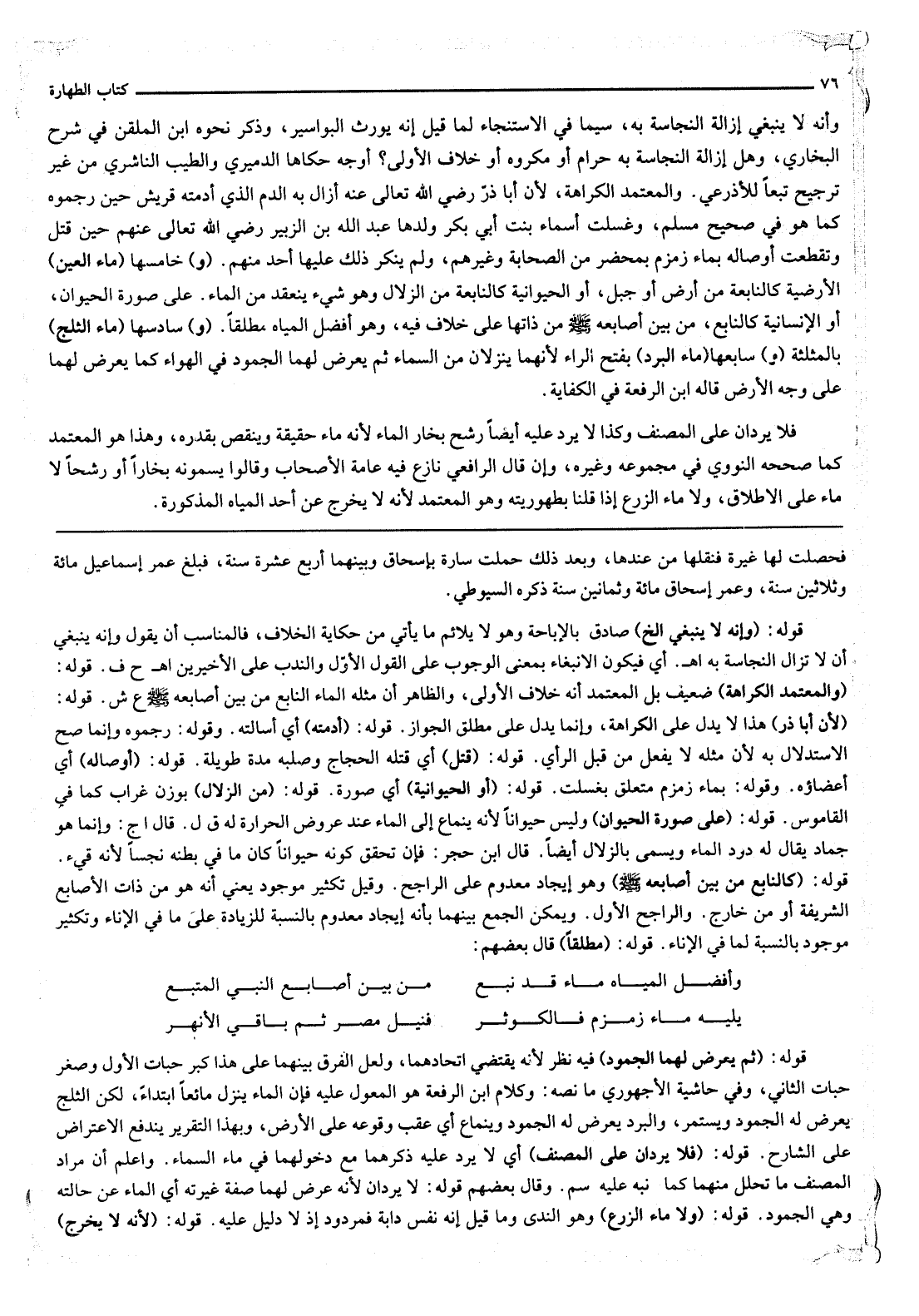 وَأَفْضَلُ الْمِيَاهِ مَاءٌ قَدْ نَبَعْ ... مِنْ بَيْنِ أَصَابِعِ النَّبِيِّ الْمُتَّبَعْ