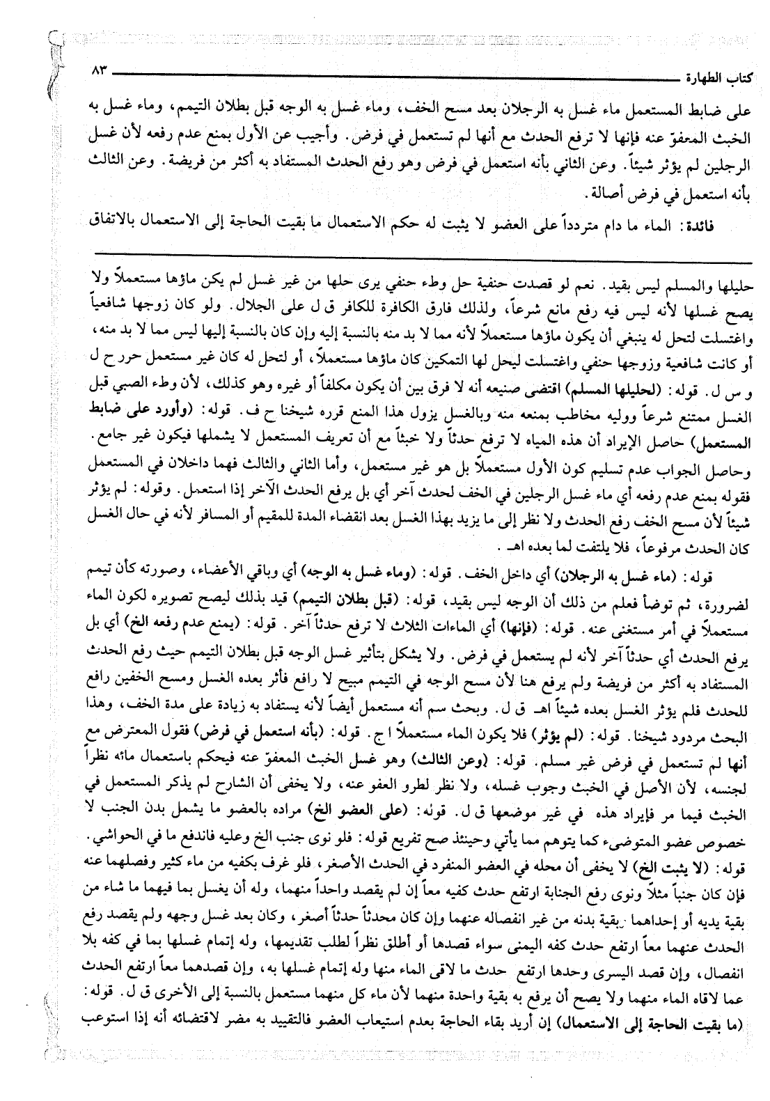 قَوْلُهُ: (مَا بَقِيَتْ الْحَاجَةُ إلَى الِاسْتِعْمَالِ) إنْ أُرِيدَ بَقَاءُ الْحَاجَةِ بِعَدَمِ اسْتِيعَابِ الْعُضْوِ فَالتَّقْيِيدُ بِهِ مُضِرٌّ لِاقْتِضَائِهِ أَنَّهُ إذَا اسْتَوْعَبَ