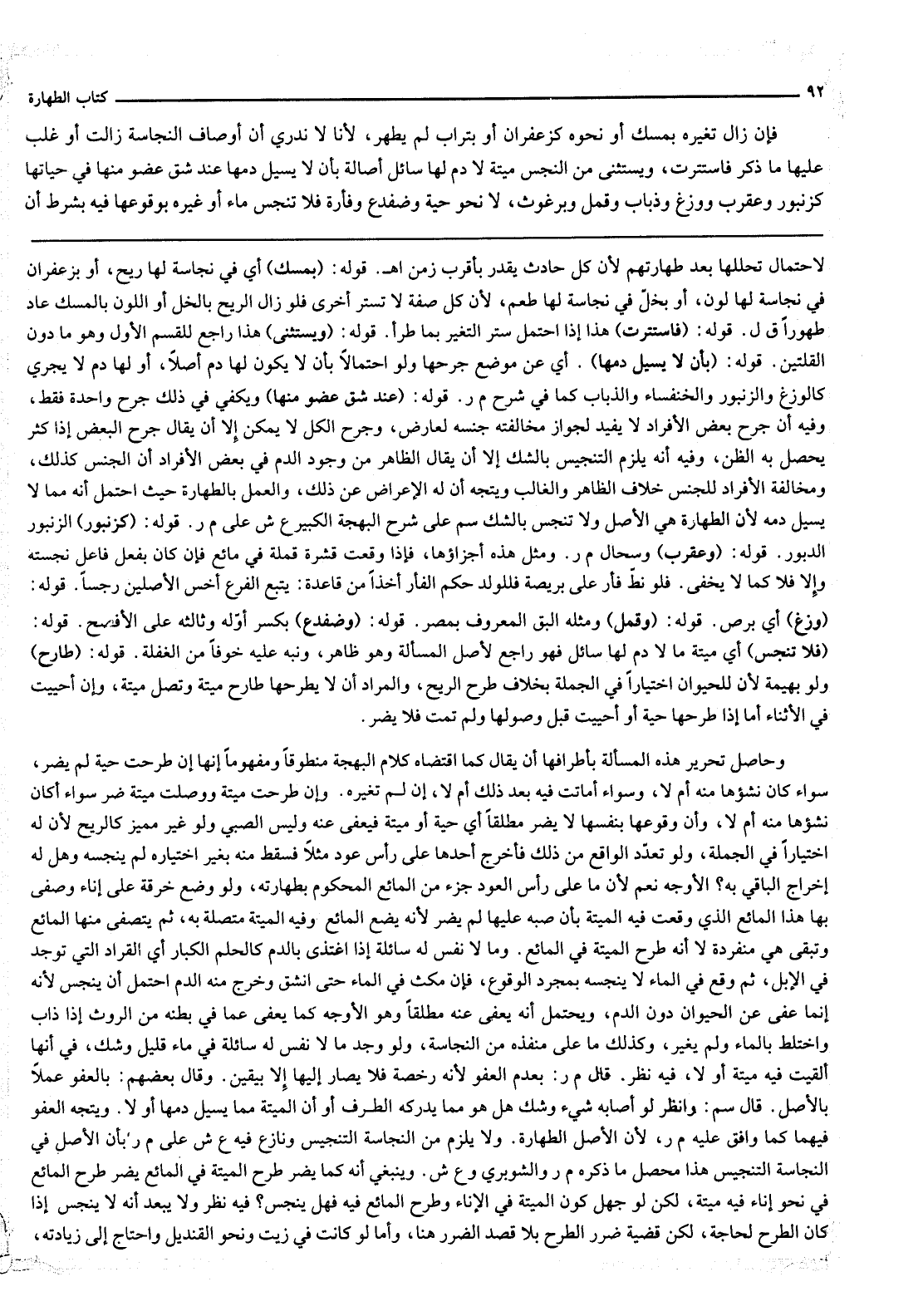 قَوْلُهُ: (وَعَقْرَبٍ) وَسَحَالٍ م ر. وَمِثْلُ هَذِهِ بِإِهَانَتِهَا، فَإِذَا وَقَعَتْ قِشْرَةُ قَمْلَةٍ فِي مَائِعٍ فَإِنْ كَانَ بِفِعْلِ فَاعِلٍ نَجَّسَتْهُ وَإِلَّا فَلَا كَمَا لَا يَخْفَى. فَلَوْ نَطَّ فَأْرٌ عَلَى بُرَيْصَةٍ فَلِلْوَلَدِ حُكْمُ الْفَأْرِ أَخْذًا مِنْ قَاعِدَةِ: يَتْبَعُ الْفَرْعُ أَخَسَّ الْأَصْلَيْنِ رِجْسًا.