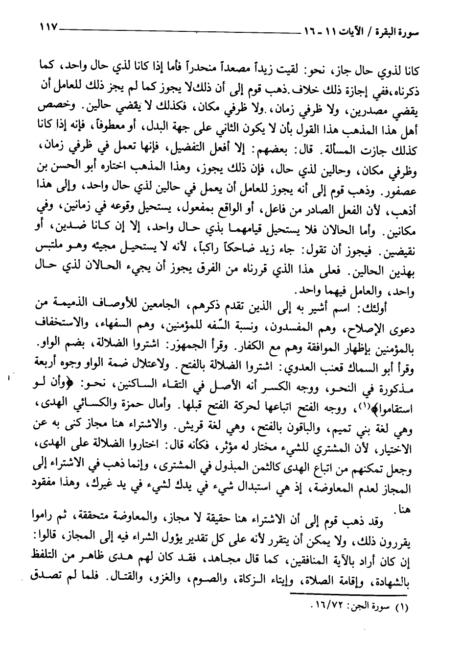 وَقَدْ ذَهَبَ قَوْمٌ إِلَى أَنَّ الِاشْتِرَاءَ هُنَا حَقِيقَةٌ لَا مَجَازٌ، وَالْمُعَاوَضَةُ مُتَحَقِّقَةٌ، ثُمَّ رَامُوا يُقَرِّرُونَ ذَلِكَ، وَلَا يُمْكِنُ أَنْ يَتَقَرَّرَ لِأَنَّهُ على كل تقدير يؤول الشِّرَاءُ فِيهِ إِلَى الْمَجَازِ، قَالُوا: