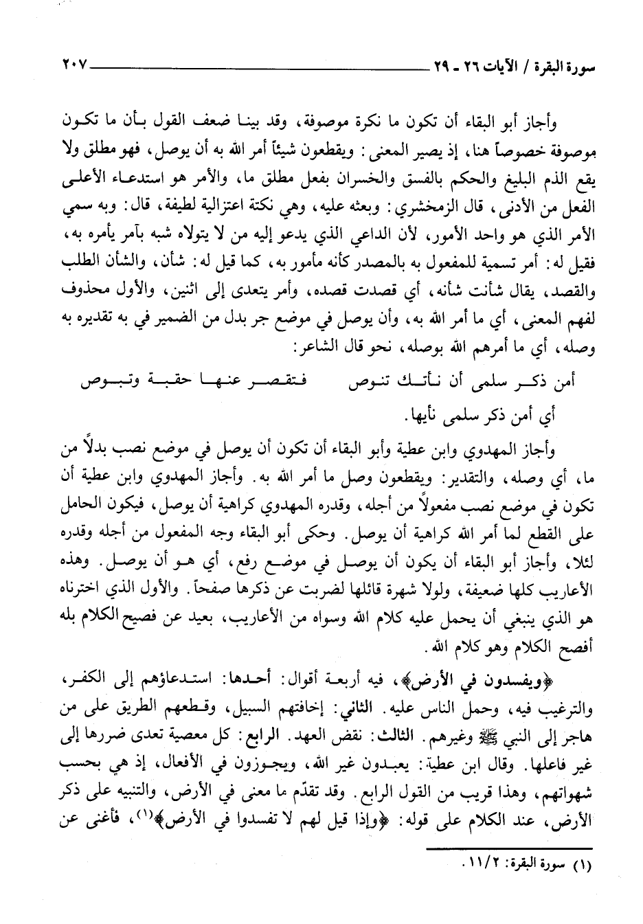 وَأَجَازَ الَمَهْدَوِيُّ وَابْنُ عَطِيَّةَ وَأَبُو الْبَقَاءِ أَنْ تَكُونَ أَنْ يُوصَلَ فِي مَوْضِعِ نَصْبٍ بَدَلًا مِنْ مَا، أَيْ وَصْلُهُ، وَالتَّقْدِيرُ: وَيَقْطَعُونَ وَصْلَ مَا أَمَرَ اللَّهُ بِهِ. وَأَجَازَ الَمَهْدَوِيُّ وَابْنُ عَطِيَّةَ أَنْ تَكُونَ فِي مَوْضِعِ نَصْبٍ مَفْعُولًا مِنْ أَجْلِهِ، وَقَدَّرَهُ الَمَهْدَوِيُّ كَرَاهِيَةَ أَنْ يُوصَلَ، فَيَكُونُ الْحَامِلُ عَلَى الْقَطْعِ لِمَا أَمَرَ اللَّهُ كَرَاهِيَةَ أَنْ يُوصَلَ. وَحَكَى أَبُو الْبَقَاءِ وَجْهَ الْمَفْعُولِ مِنْ أَجْلِهِ وَقَدَّرَهُ لِئَلَّا، وَأَجَازَ أَبُو الْبَقَاءِ أَنْ يَكُونَ أَنْ يُوصَلَ فِي مَوْضِعِ رَفْعٍ، أَيْ هُوَ أَنْ يُوصَلَ. وَهَذِهِ الْأَعَارِيبُ كُلُّهَا ضَعِيفَةٌ، وَلَوْلَا شُهْرَةُ قَائِلِهَا لَضَرَبْتُ عَنْ ذِكْرِهَا صَفْحًا. وَالْأَوَّلُ الَّذِي اخْتَرْنَاهُ هُوَ الَّذِي يَنْبَغِي أَنْ يُحْمَلَ عَلَيْهِ كَلَامُ اللَّهِ وَسِوَاهُ مِنَ الْأَعَارِيبِ، بَعِيدٌ عَنْ فَصِيحِ الْكَلَامِ بَلْهَ أَفْصَحِ الْكَلَامِ وَهُوَ كَلَامُ اللَّهِ.