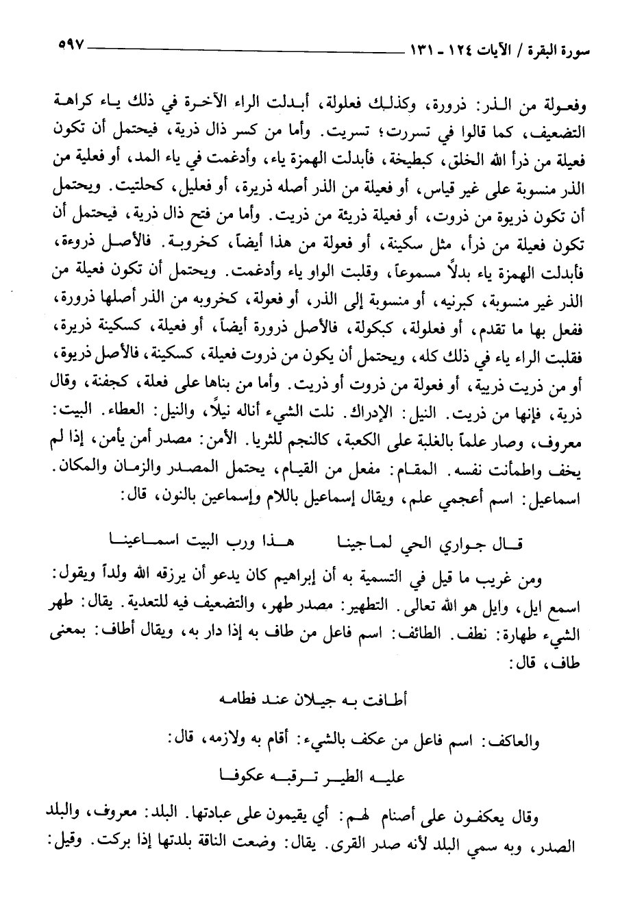عَلَيْهِ الطَّيْرُ تَرْقُبُهُ عُكُوفَا وَقَالَ يَعْكُفُونَ عَلَى أَصْنَامٍ لَهُمْ: أَيْ يُقِيمُونَ عَلَى عِبَادَتِهَا. الْبَلَدُ: مَعْرُوفٌ، وَالْبَلَدُ الصَّدْرُ، وَبِهِ سُمِّيَ الْبَلَدُ لِأَنَّهُ صَدْرُ الْقُرَى. يُقَالُ: وَضَعَتِ النَّاقَةُ بَلْدَتَهَا إِذَا بَرَكَتْ. وَقِيلَ: