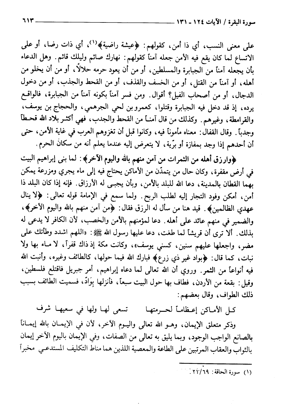 ، وَكَانَتْ مَكَّةُ إِذْ ذَاكَ قَفْرًا، لَا مَاءَ بِهَا وَلَا نَبَاتَ، كَمَا قَالَ: بِوادٍ غَيْرِ ذِي زَرْعٍ فَبَارَكَ اللَّهُ فِيمَا حَوْلُهَا، كَالطَّائِفِ وَغَيْرِهِ، وَأَنْبَتَ اللَّهُ فِيهِ أَنْوَاعًا مِنَ الثَّمَرِ.
