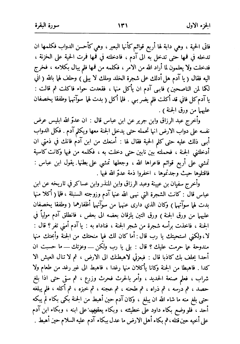 وَأخرج عبد الرَّزَّاق وَابْن جرير عَن ابْن عَبَّاس قَالَ: إِن عدوّ الله إِبْلِيس عرض نَفسه على دَوَاب الأَرْض أَنَّهَا تحمله حَتَّى يدْخل الْجنَّة مَعهَا ويكلم آدم