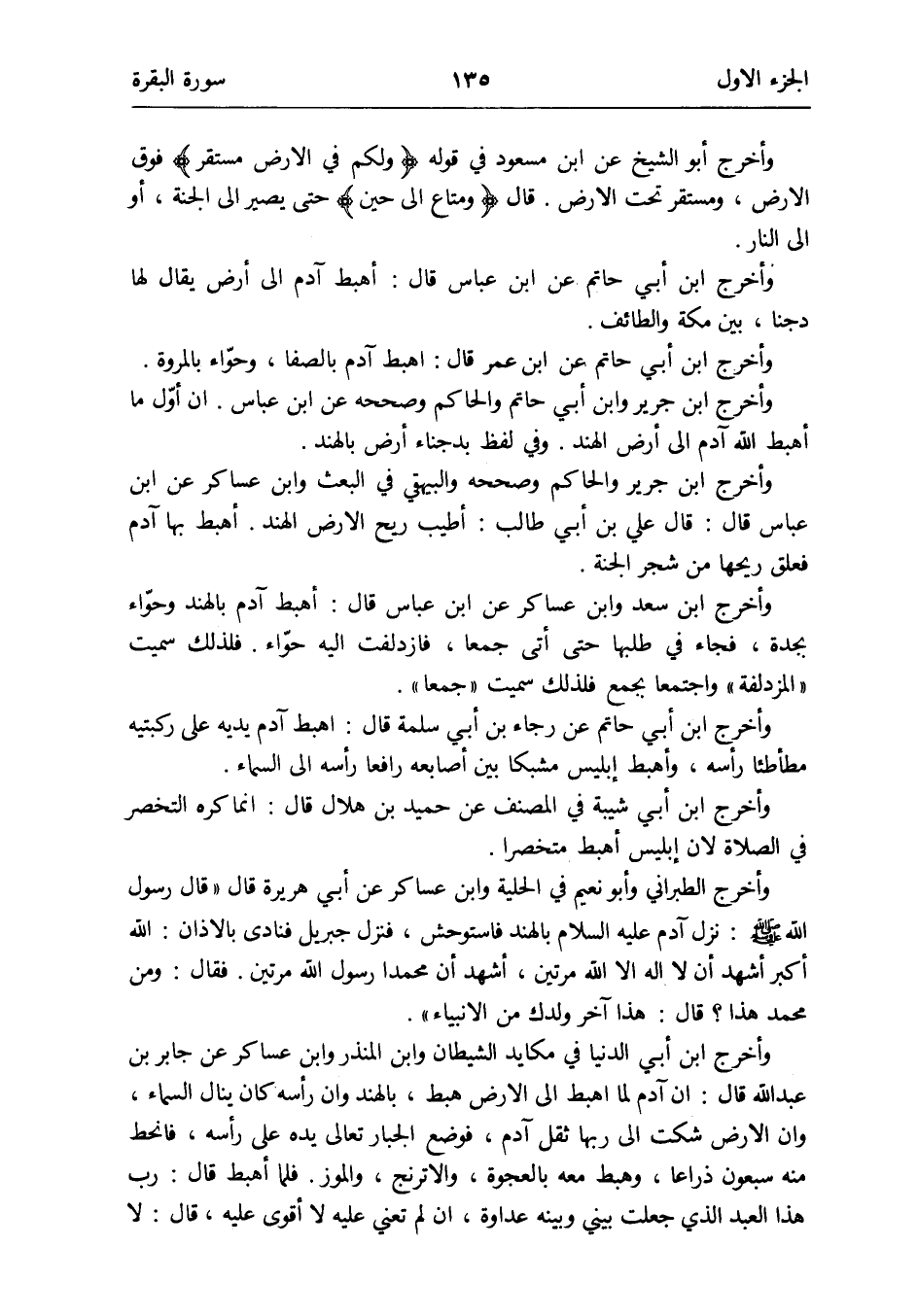 وَأخرج ابْن أبي حَاتِم عَن ابْن عمر قَالَ: اهبط آدم بالصفا وحوّاء بالمروة