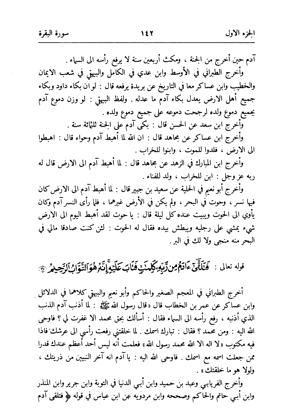 وَأخرج الْفرْيَابِيّ وَعبد بن حميد وَابْن أبي الدُّنْيَا فِي التَّوْبَة وَابْن جرير وَابْن الْمُنْذر وَابْن أبي حَاتِم وَالْحَاكِم وَصَححهُ وَابْن مرْدَوَيْه عَن ابْن عَبَّاس فِي قَوْله {فَتلقى آدم من ربه كَلِمَات}