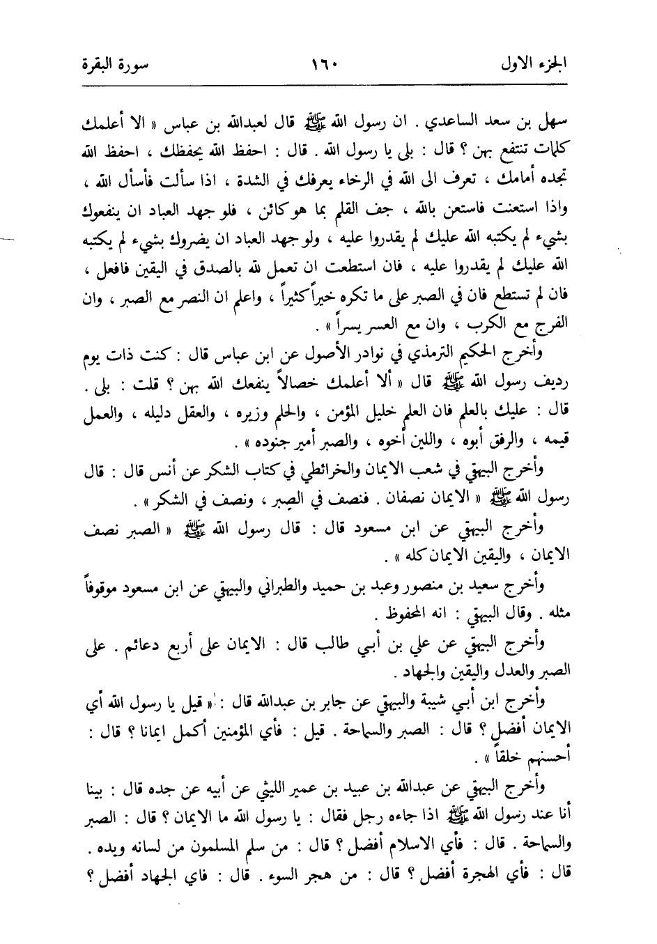 وَأخرج ابْن أبي شيبَة وَالْبَيْهَقِيّ عَن جَابر بن عبد الله قَالَ: قيل يَا رَسُول الله أَي الإِيمان أفضل قَالَ: الصَّبْر والسماحة