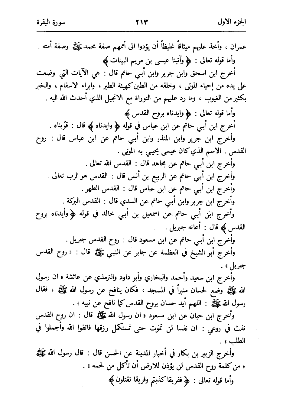 وَأخرج ابْن أبي حَاتِم عَن إِسْمَاعِيل بن أبي خَالِد فِي قَوْله {وأيدناه بِروح الْقُدس} قَالَ: أَعَانَهُ جِبْرِيل