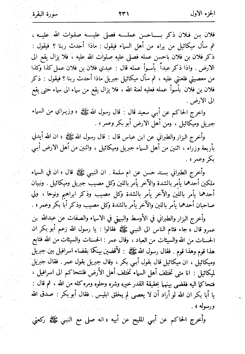 فلَان بن فلَان ذكر بِأَحْسَن عمله فصلى عَلَيْهِ صلوَات الله عَلَيْهِ ثمَّ سَأَلَ مِيكَائِيل من يرَاهُ من أهل السَّمَاء فَيَقُول: مَاذَا أحدث رَبنَا فَيَقُول: ذكر فلَان بن فلَان بِأَحْسَن عمله فصلى عَلَيْهِ صلوَات الله عَلَيْهِ فَلَا يزَال يَقع إِلَى الأَرْض