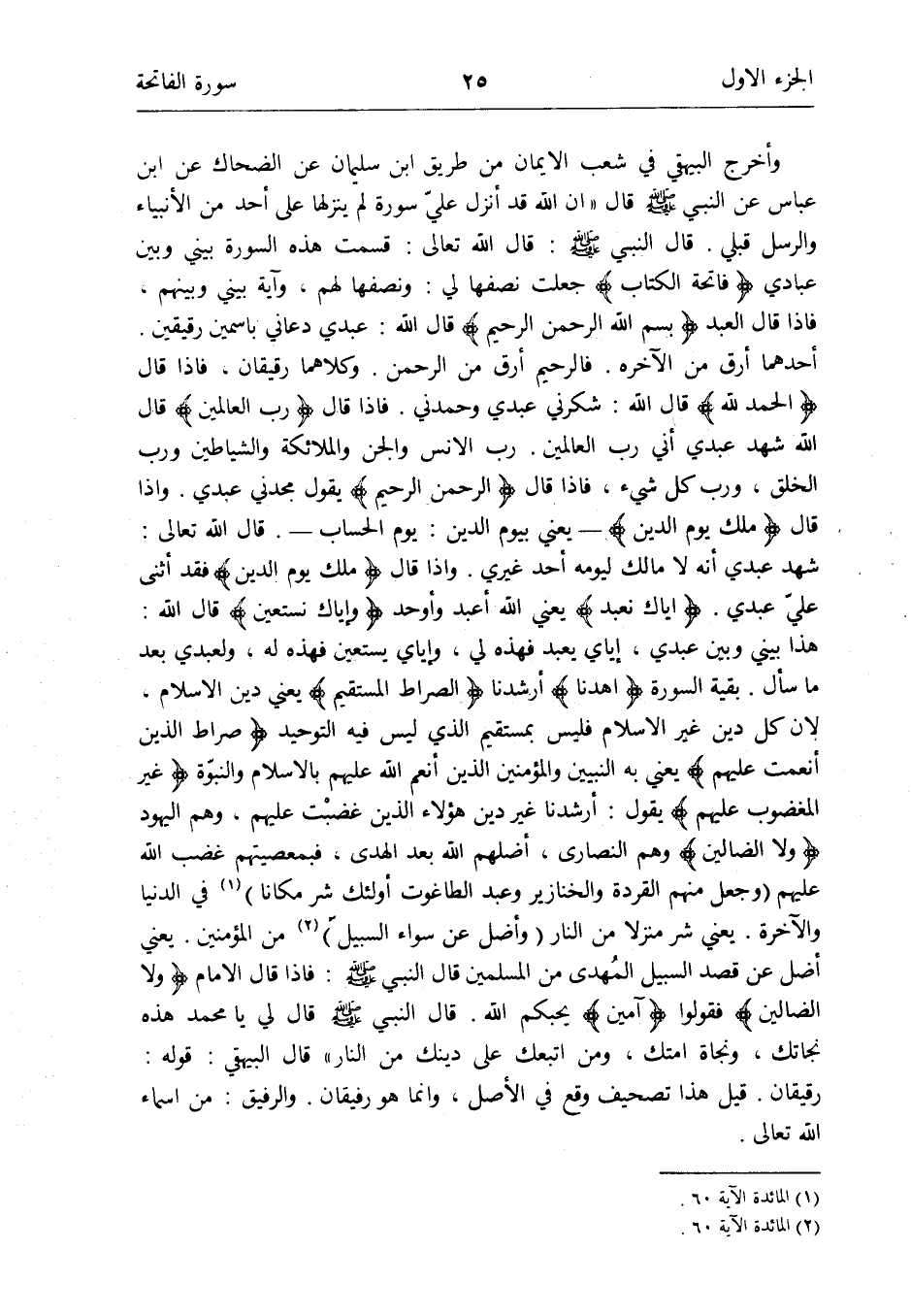 قَالَ النَّبِي صلى الله عَلَيْهِ وَسلم: قَالَ الله تَعَالَى: قسمت هَذِه السُّورَة بيني وَبَين عبَادي فَاتِحَة الْكتاب جعلت نصفهَا لي: وَنِصْفهَا لَهُم وَآيَة بيني وَبينهمْ فَإِذا قَالَ العَبْد {بِسم الله الرَّحْمَن الرَّحِيم} قَالَ الله: عَبدِي دَعَاني باسمين رقيقين