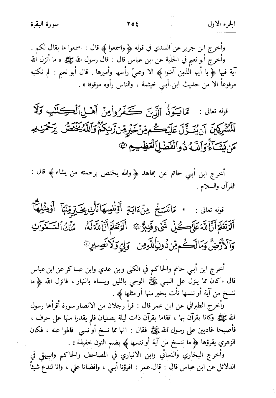 قَوْله تَعَالَى: مَا ننسخ من آيَة أَو ننسها نأت بِخَير مِنْهَا أَو مثلهَا ألم تعلم أَن الله على كل شَيْء قدير ألم تعلم أَن الله لَهُ ملك السَّمَوَات وَالْأَرْض وَمَا لكم من دون الله من ولي وَلَا نصير