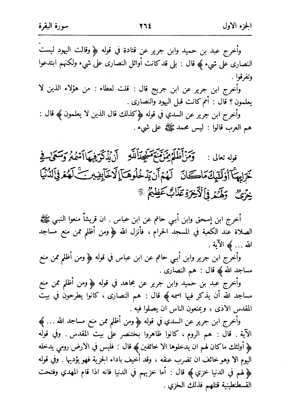 وَأخرج ابْن جرير وَابْن أبي حَاتِم عَن ابْن عَبَّاس فِي قَوْله {وَمن أظلم مِمَّن منع مَسَاجِد الله} قَالَ: هم النَّصَارَى
