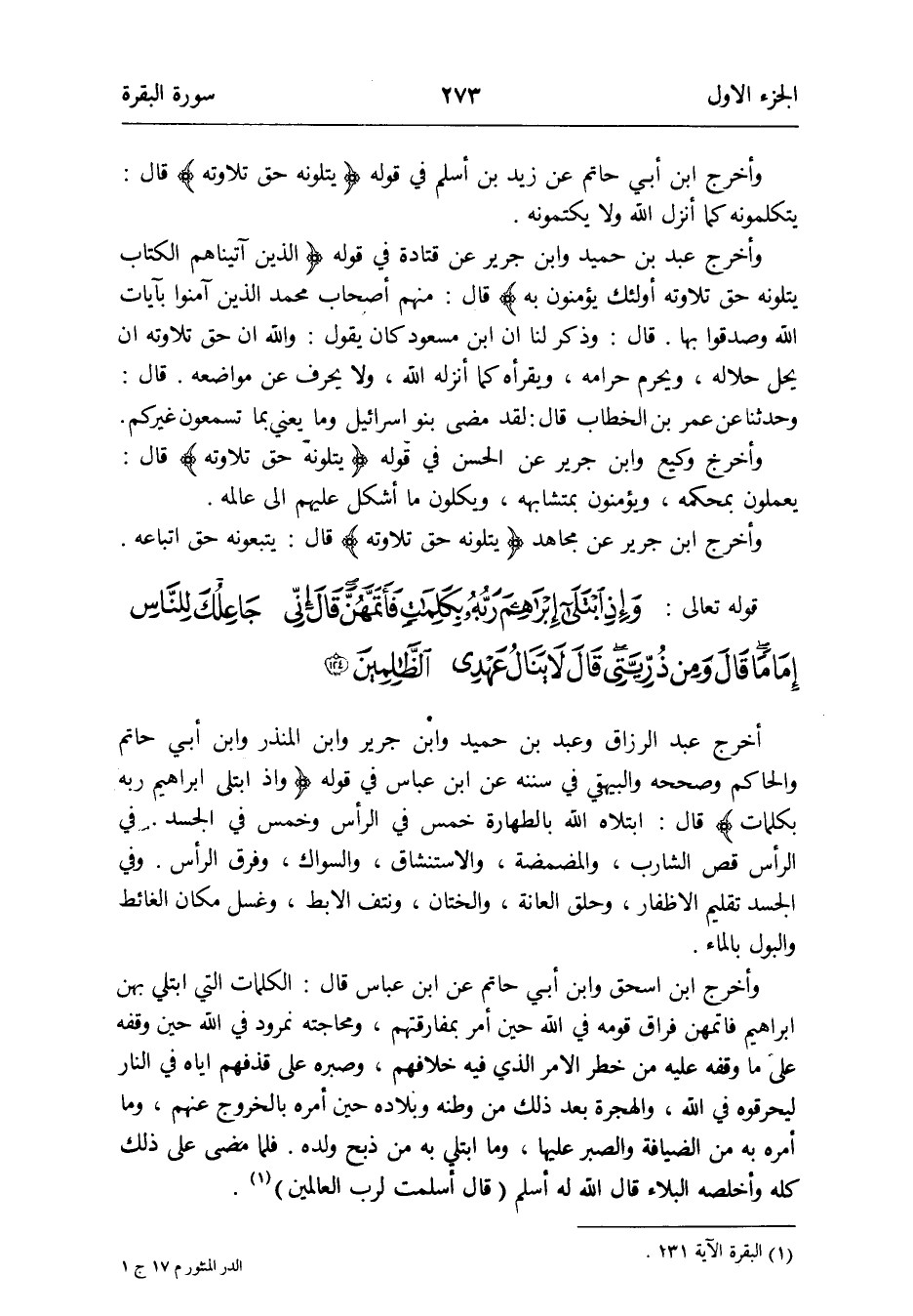 كتاب الدر المنثور في التفسير بالمأثور (اسم الجزء: 1)