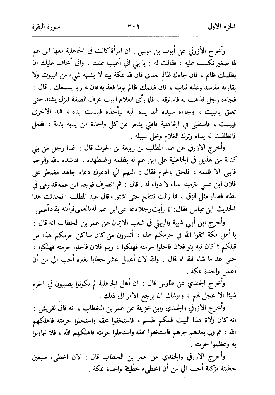 وَأخرج ابْن أبي شيبَة وَالْبَيْهَقِيّ فِي شعب الإِيمان عَن عمر بن الْخطاب أَنه قَالَ: يَا أهل مَكَّة اتَّقوا الله فِي حرمكم هَذَا أَتَدْرُونَ من كَانَ سَاكن حرمكم هَذَا من قبلكُمْ كَانَ فِيهِ بَنو فلَان فاحلوا حرمته فهلكوا وَبَنُو فلَان فاحلوا حرمته فهلكوا حَتَّى عد مَا شَاءَ ثمَّ قَالَ: وَالله لِأَن أعمل عشر خَطَايَا بِغَيْرِهِ أحب إِلَيّ من أَن أعمل وَاحِدَة بِمَكَّة