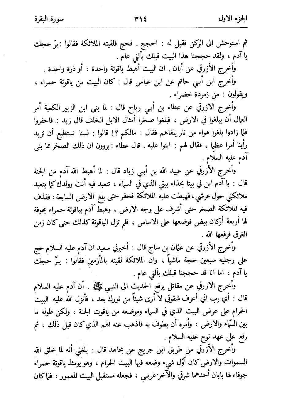 وَأخرج الْأَزْرَقِيّ عَن عُثْمَان بن سَاج قَالَ: أَخْبرنِي سعيد أَن آدم عَلَيْهِ السَّلَام حج على رجلَيْهِ سبعين حجَّة مَاشِيا وَأَن الْمَلَائِكَة لَقيته بالمأزمين فَقَالُوا: برَّ حجك يَا آدم أما أَنا قد حجَجنَا قبلك بألفي عَام
