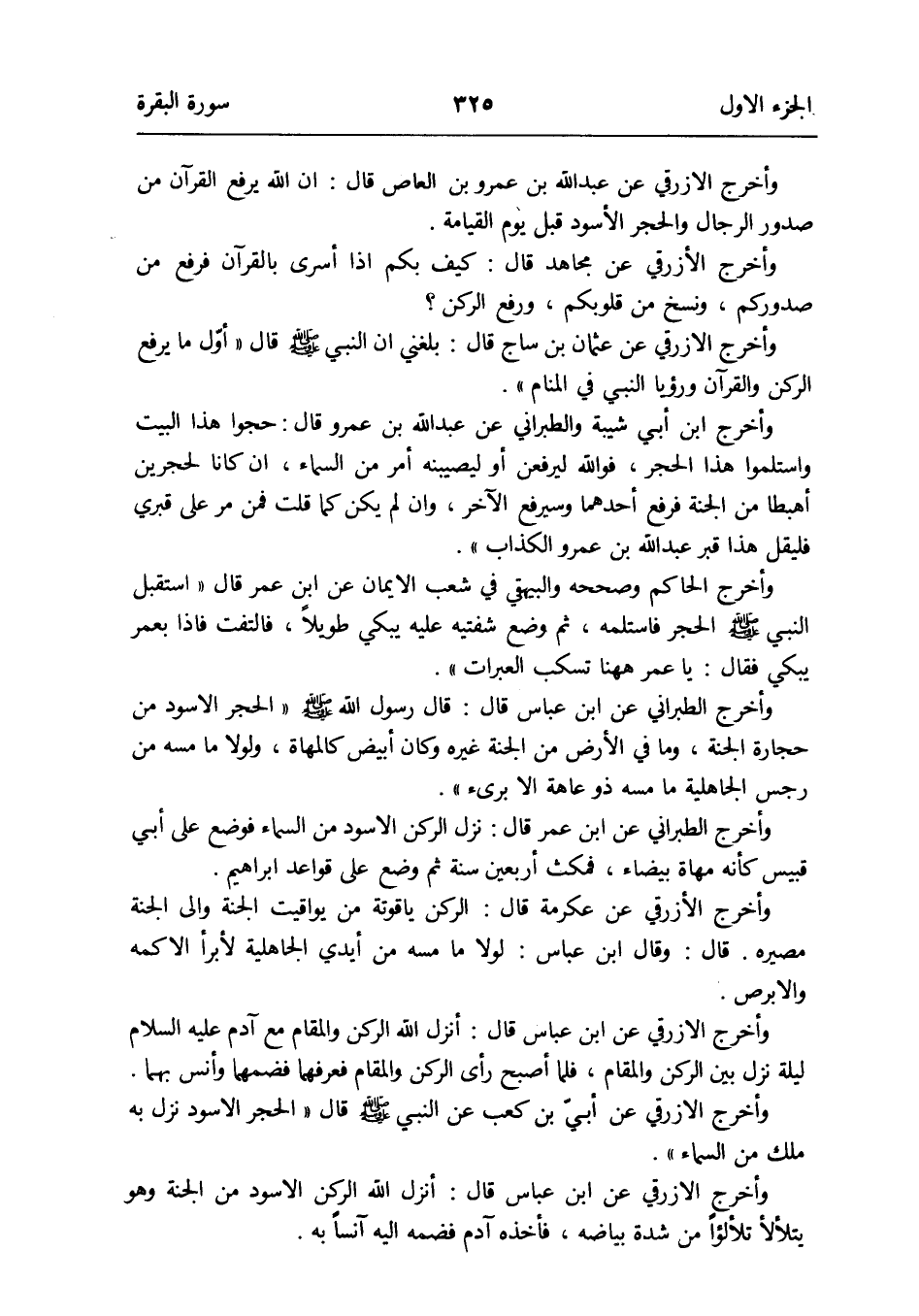 وَأخرج الْأَزْرَقِيّ عَن عبد الله بن عَمْرو بن الْعَاصِ قَالَ: إِن الله يرفع الْقُرْآن من صُدُور الرِّجَال وَالْحجر الْأسود قبل يَوْم الْقِيَامَة