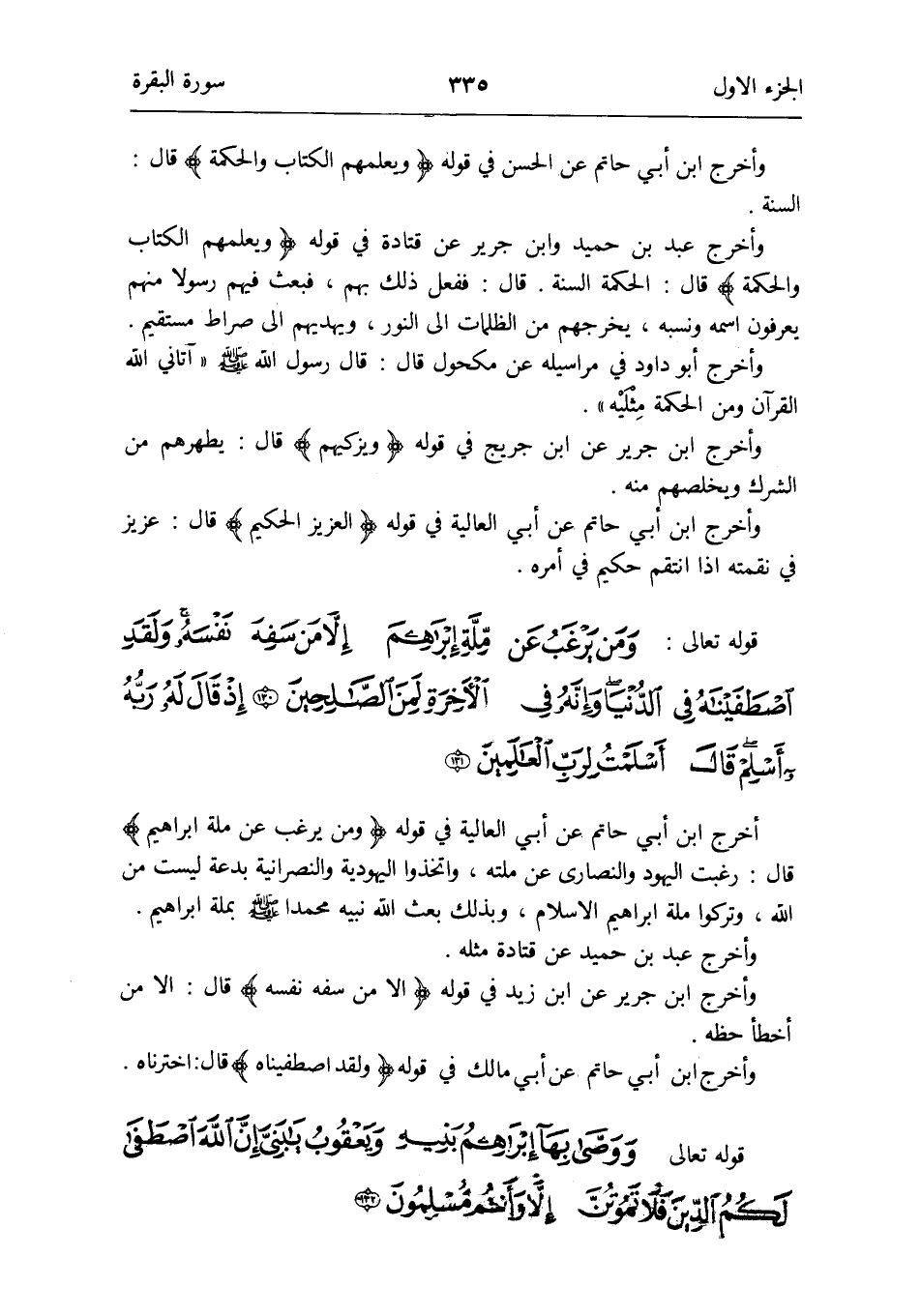 أخرج ابْن أبي حَاتِم عَن أبي الْعَالِيَة فِي قَوْله {وَمن يرغب عَن مِلَّة إِبْرَاهِيم} قَالَ: رغبت الْيَهُود وَالنَّصَارَى عَن مِلَّته وَاتَّخذُوا الْيَهُودِيَّة والنصرانية بِدعَة لَيست من الله وَتركُوا مِلَّة إِبْرَاهِيم الإِسلام وَبِذَلِك بعث الله نبيه مُحَمَّدًا صلى الله عَلَيْهِ وَسلم بِملَّة إِبْرَاهِيم