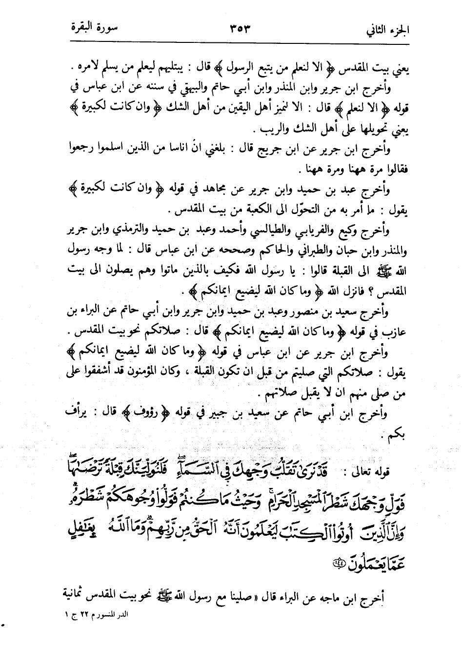 قَوْله تَعَالَى: قد نرى تقلب وَجهك فِي السَّمَاء فلنولينك قبْلَة ترضاها فول وَجهك شطر الْمَسْجِد الْحَرَام وَحَيْثُ كُنْتُم فَوَلوا وُجُوهكُم شطره وَإِن الَّذين أُوتُوا الْكتاب ليعلمون أَنه الْحق من رَبهم وَمَا الله بغافل عَمَّا يعماون