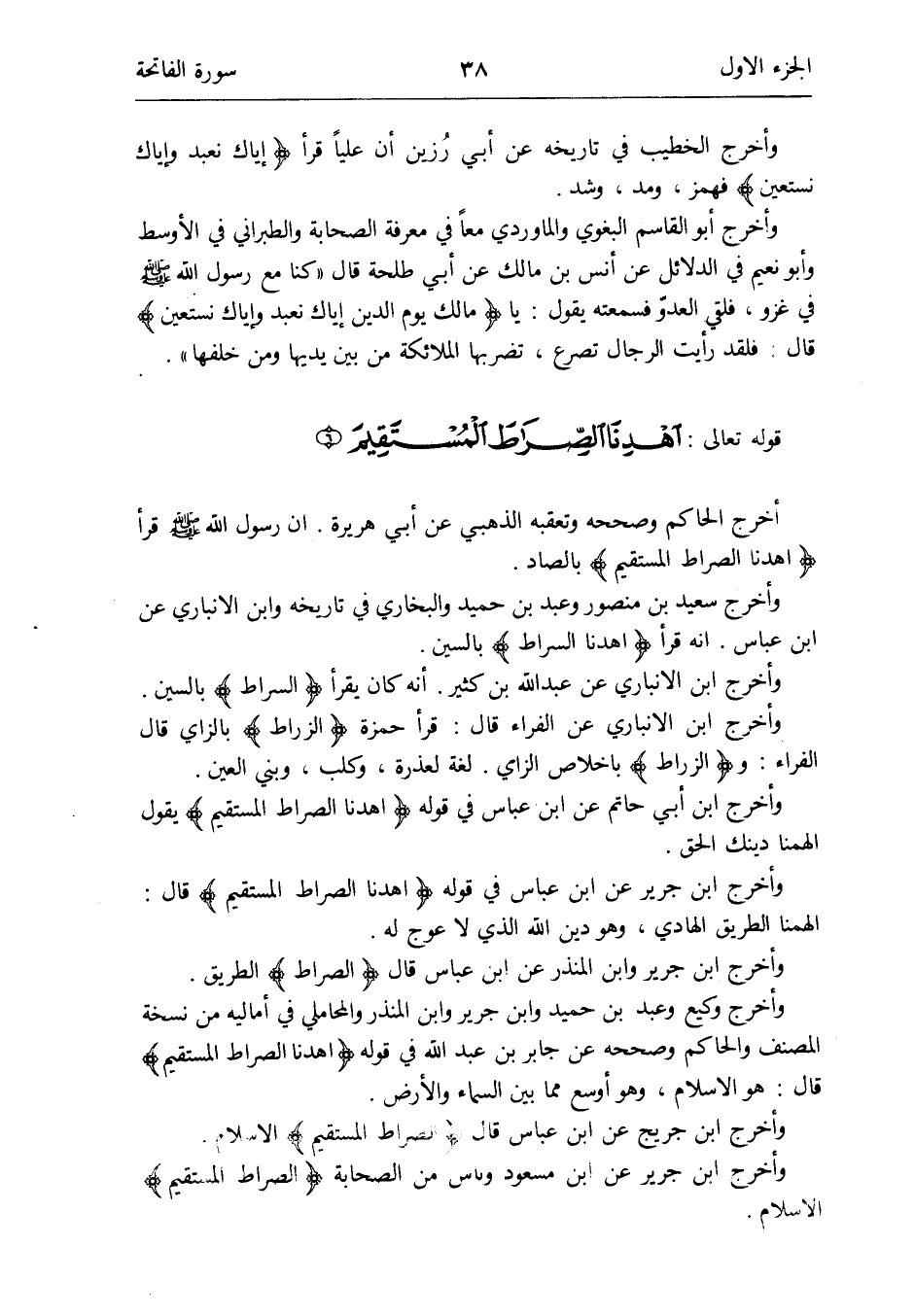 وَأخرج ابْن جرير عَن ابْن مَسْعُود وناس من الصَّحَابَة {الصِّرَاط الْمُسْتَقيم} الإِسلام