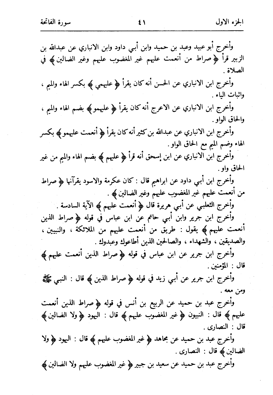 وَأخرج ابْن جرير عَن ابْن عَبَّاس فِي قَوْله {صِرَاط الَّذين أَنْعَمت عَلَيْهِم} قَالَ: الْمُؤمنِينَ