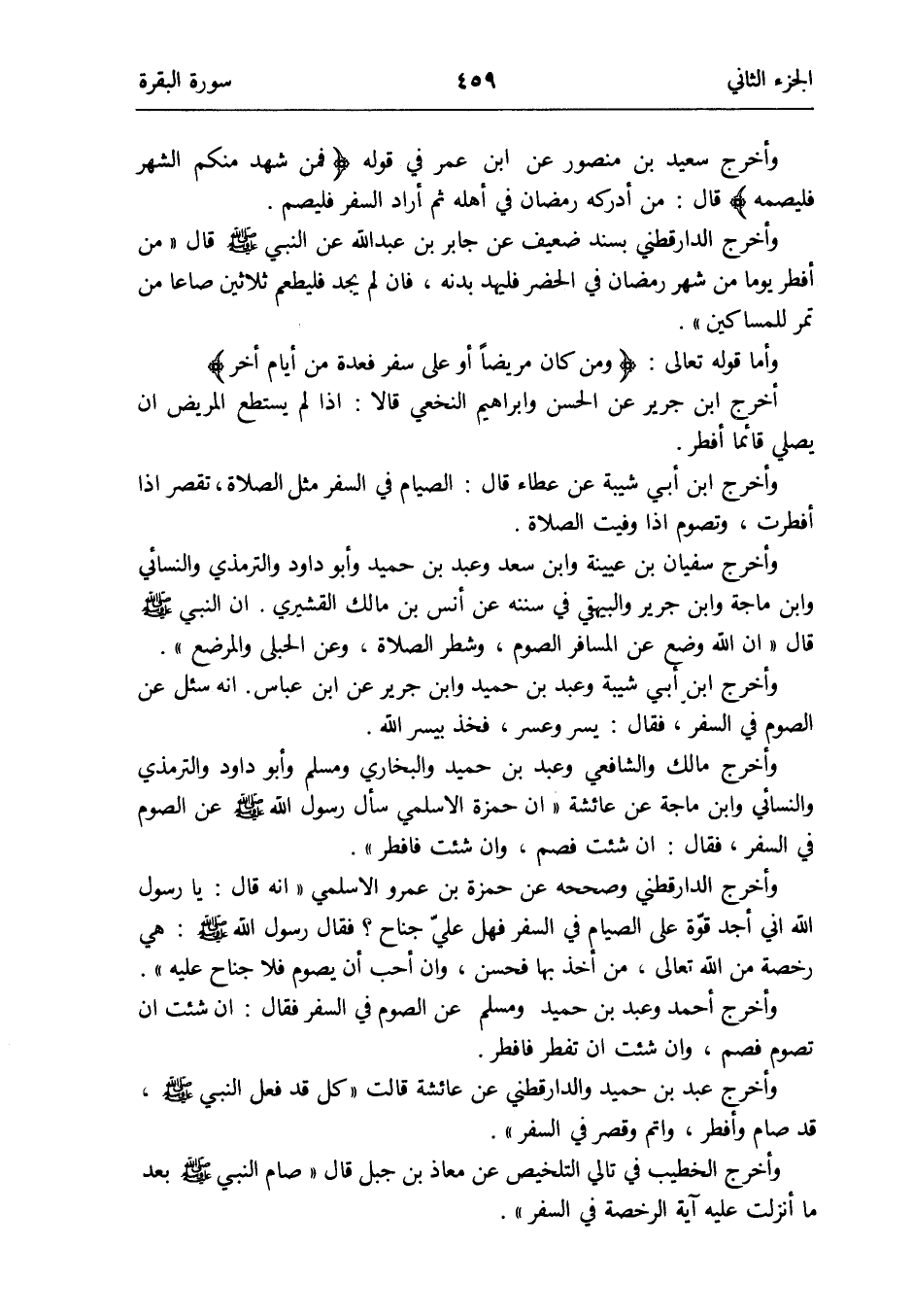 وَأخرج أَحْمد وَعبد بن حميد وَمُسلم عَن الصَّوْم فِي السّفر فَقَالَ: إِن شِئْت أَن تَصُوم فَصم وَإِن شِئْت أَن تفطر فافطر