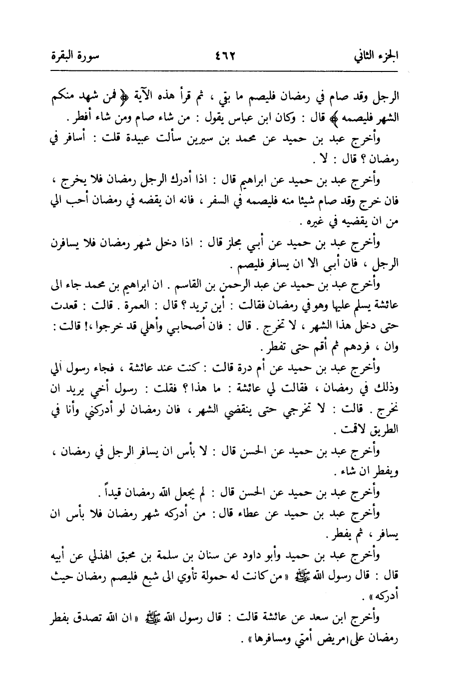 وَأخرج عبد بن حميد عَن مُحَمَّد بن سِيرِين سَأَلت عُبَيْدَة قلت: أسافر فِي رَمَضَان قَالَ: لَا