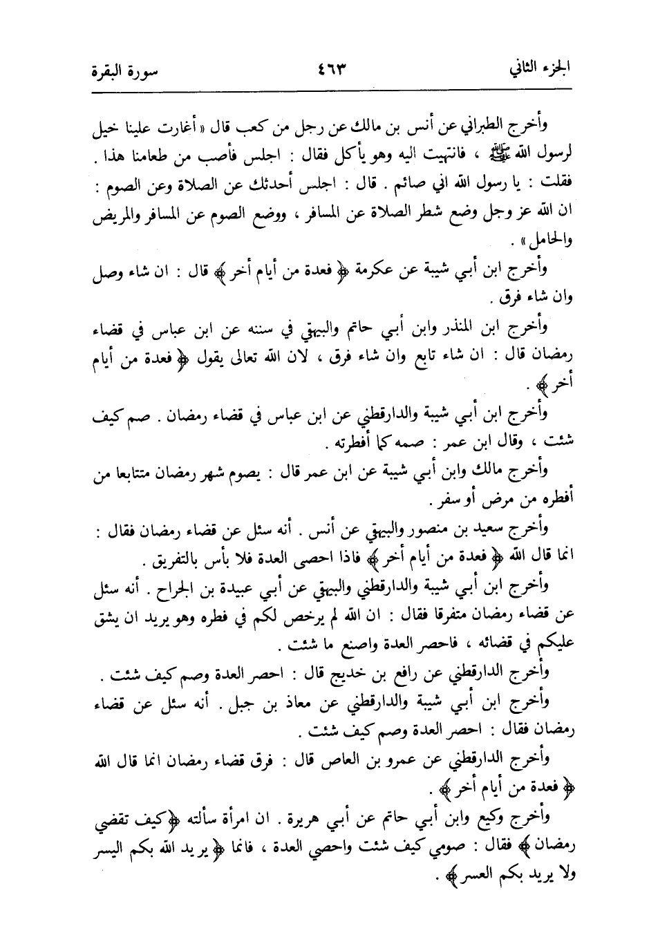 وَأخرج ابْن أبي شيبَة وَالدَّارَقُطْنِيّ عَن ابْن عَبَّاس فِي قَضَاء رَمَضَان