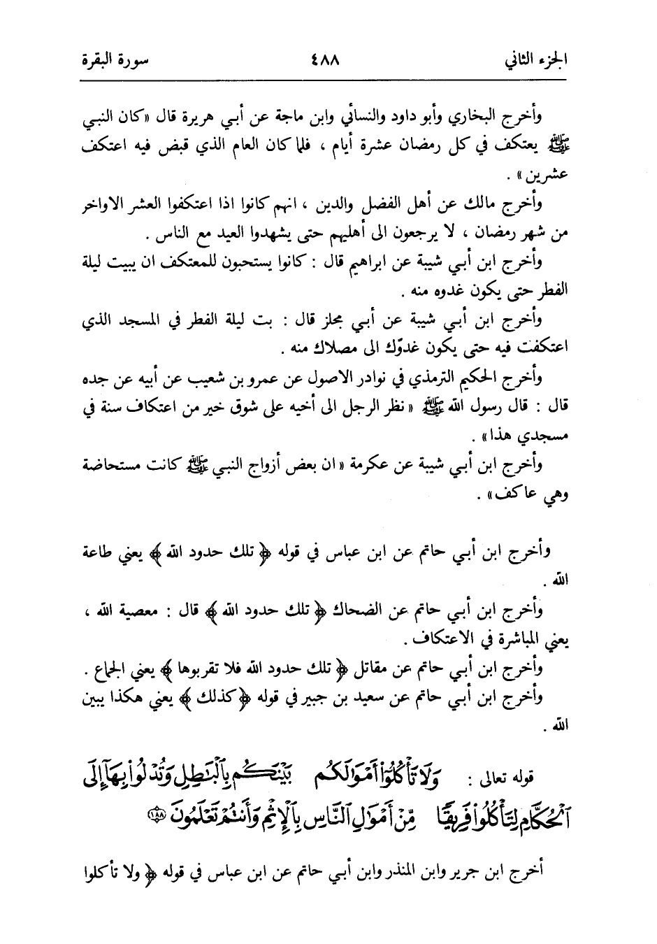 وَأخرج ابْن أبي حَاتِم عَن الضَّحَّاك {تِلْكَ حُدُود الله} قَالَ: مَعْصِيّة الله يَعْنِي الْمُبَاشرَة فِي الِاعْتِكَاف