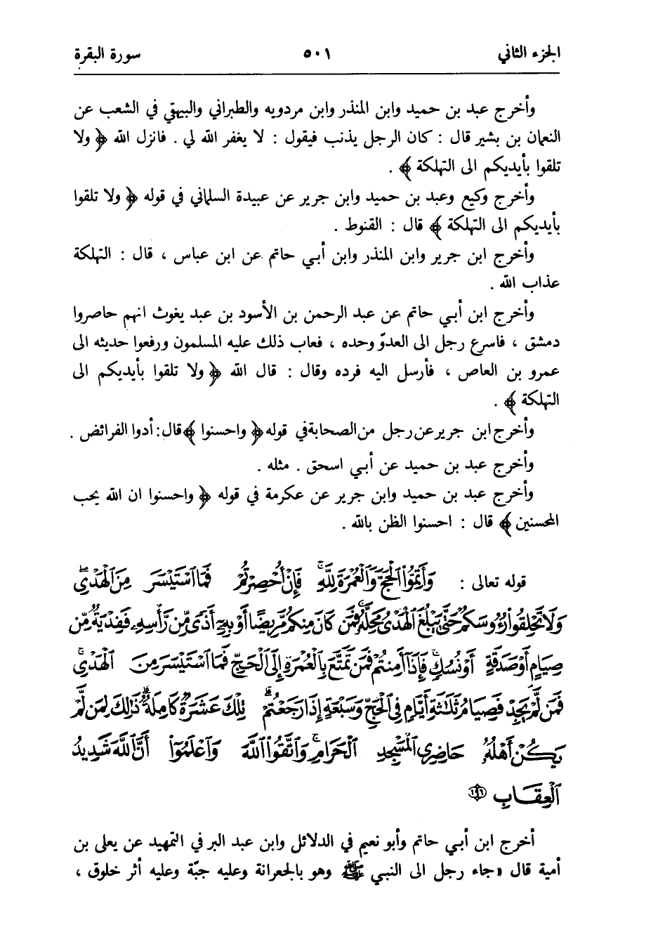 وَأخرج وَكِيع وَعبد بن حميد وَابْن جرير عَن عُبَيْدَة السَّلمَانِي فِي قَوْله {وَلَا تلقوا بِأَيْدِيكُمْ إِلَى التَّهْلُكَة} قَالَ: الْقنُوط